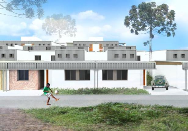 A tipologia de casa escalonada combina uma crescente demanda por habitações de interesse social e a necessidade de ocupar terrenos com grandes inclinações. A casa em desnível, características da implantação do projeto, segue uma estética que gera ordem e propicia uma padronização do loteamento que, de certa forma, remete às implantações convencionais em morros, ou seja, a estética da favela como elemento de projeto e a busca de uma identidade para a comunidade.