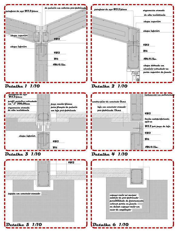 Embora também possa ser construída de maneira tradicional, a proposta para esta tipologia possue muitas vantagens para uma produção pré-fabricada em grande escala, com estrutura, fachada e cobertura totalemnete industrializadas e uma casa totalmente construída num máximo de 15 dias. Sua forma exterior comprova um sistema pré-fabricado, mas mesmo assim resgata a configuração de uma volumetria tradicional de casas com duas águas.