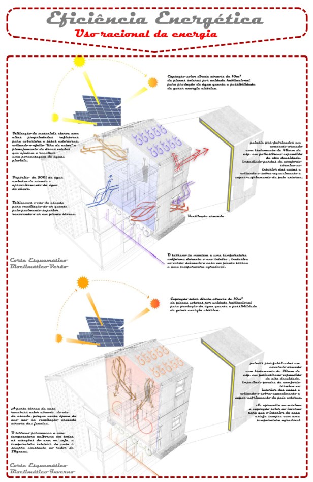 A escolha da tipologia “sobrados” para o desenvolvimento de habitações de caráter social foi elegida principalmente como forma de alterar o minimo possível a maneira de viver o dia-a-dia destas pessoas.