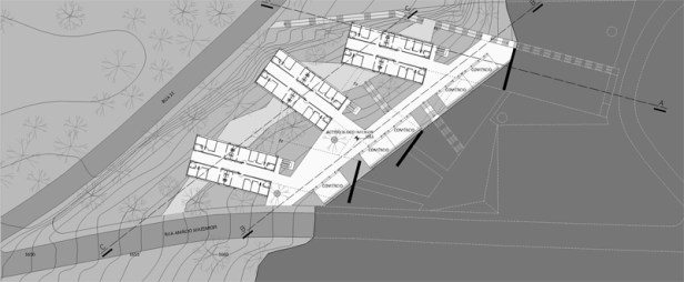O projeto volta-se para a ocupação de encostas em geral por se desenvolver contra a curva de nível. Por isso os edifícios pouco tocam o solo e consequentemente como que flutuam no ar, permitindo uma extraordinária apreensão da paisagem.