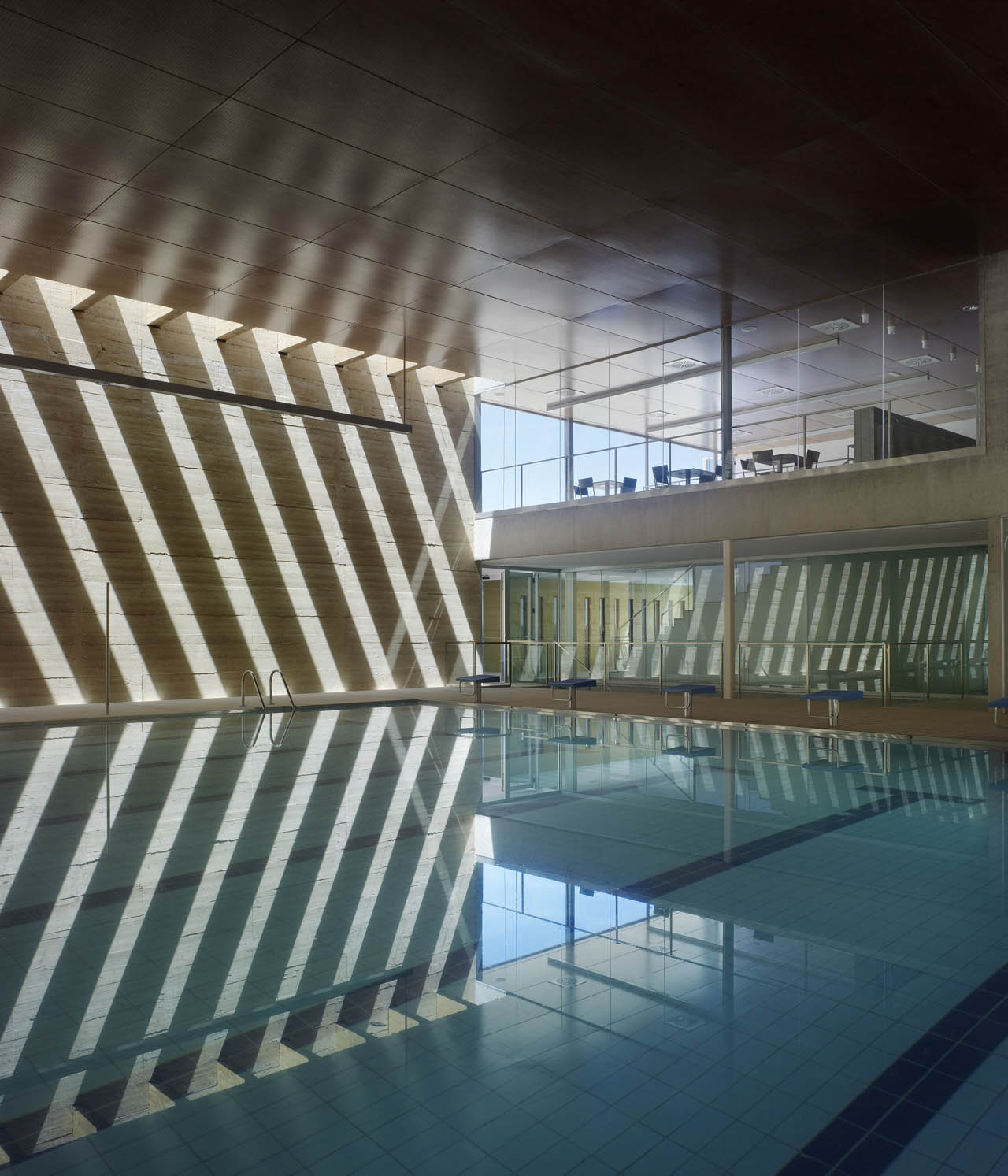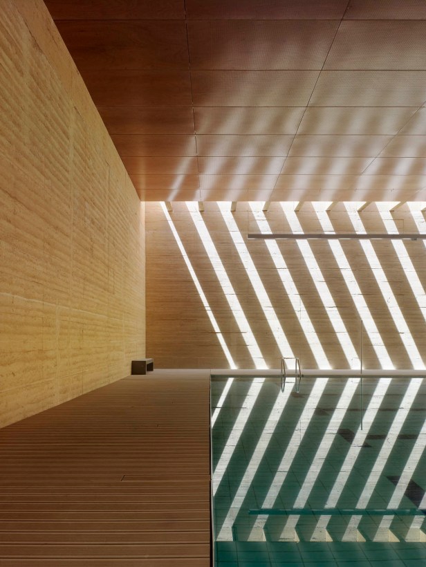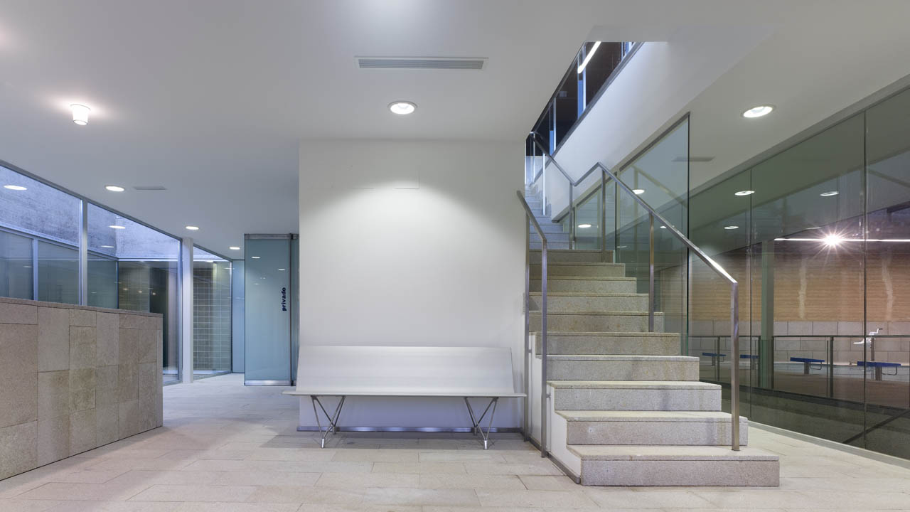 As diferentes áreas em que o programa é dividido recebem luz e ventilação natural através de uma série de pátios interiores que também permitem o controle visual dos edifícios, tornando-as transparentes ou opacas, conforme apropriado. O volume principal, que contém a piscina, deve possuir um rigoroso controle de suas condições climáticas.