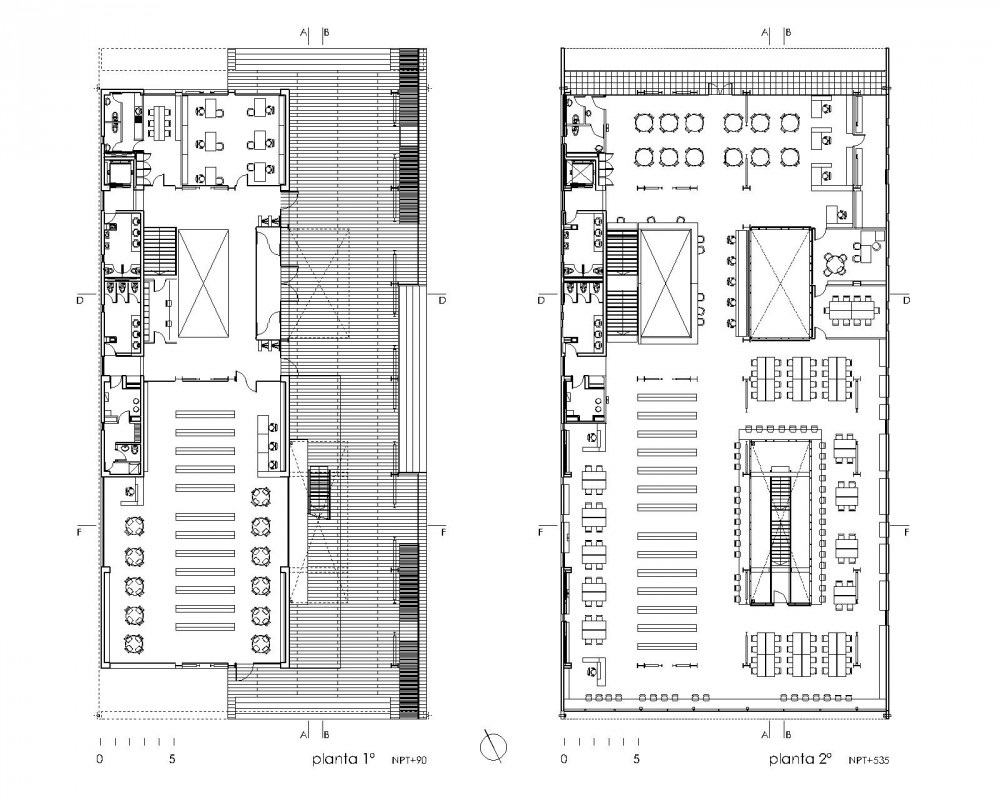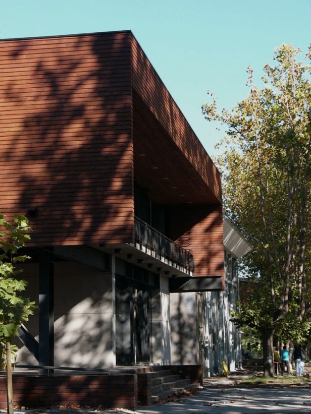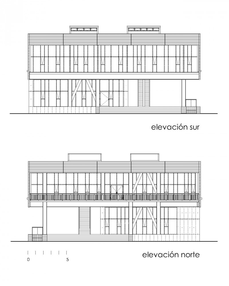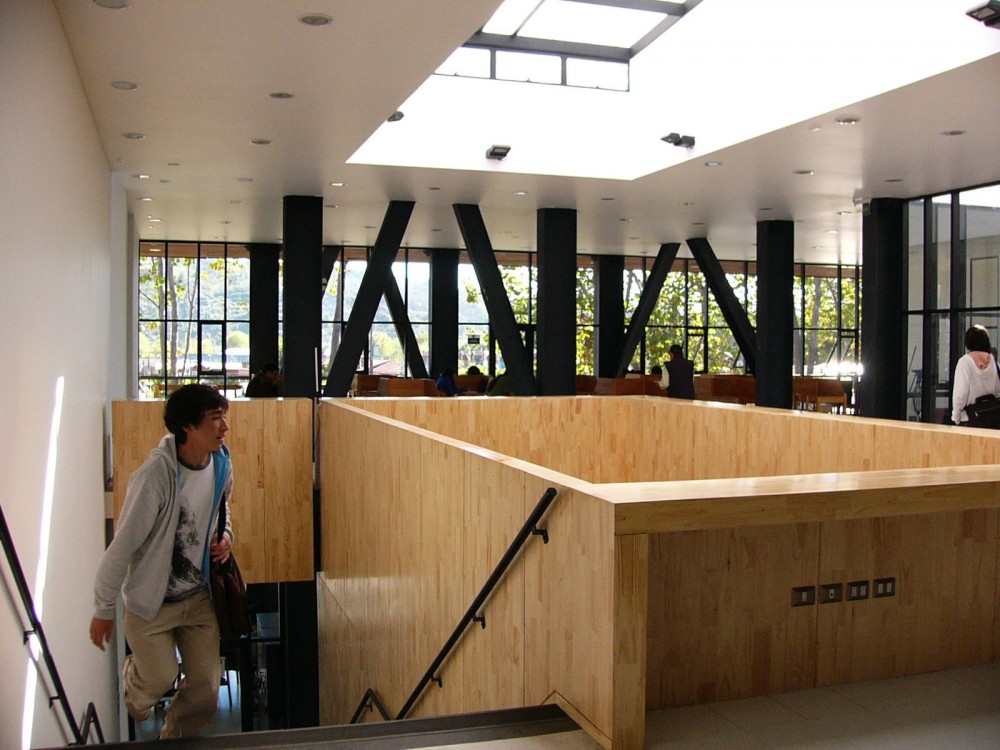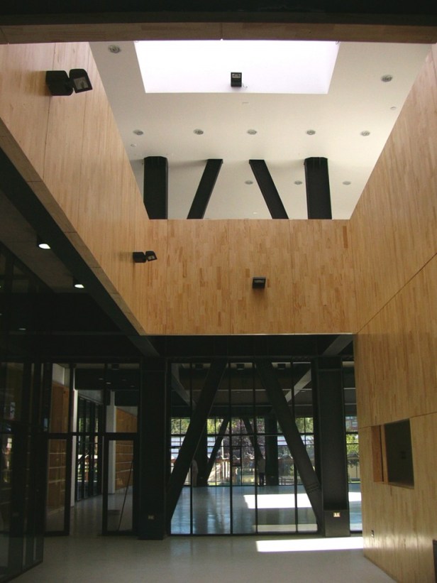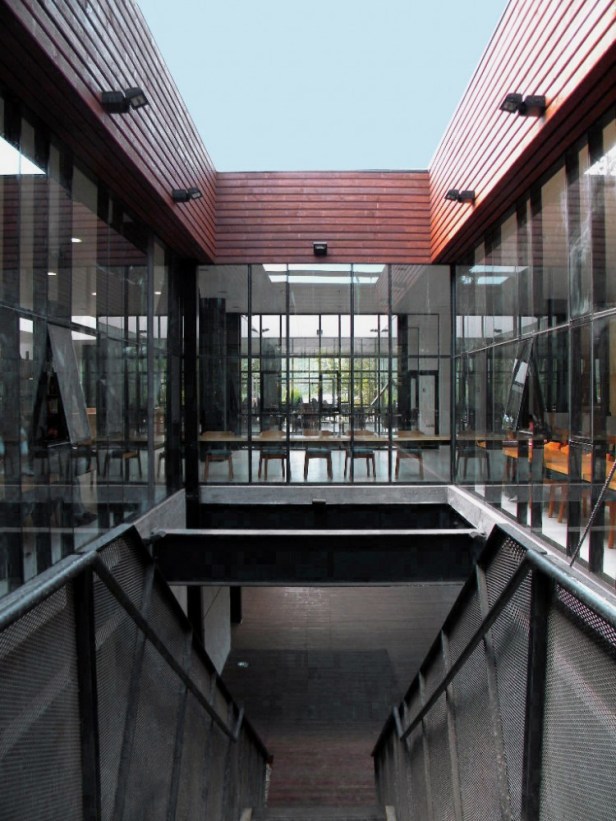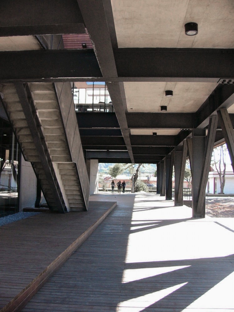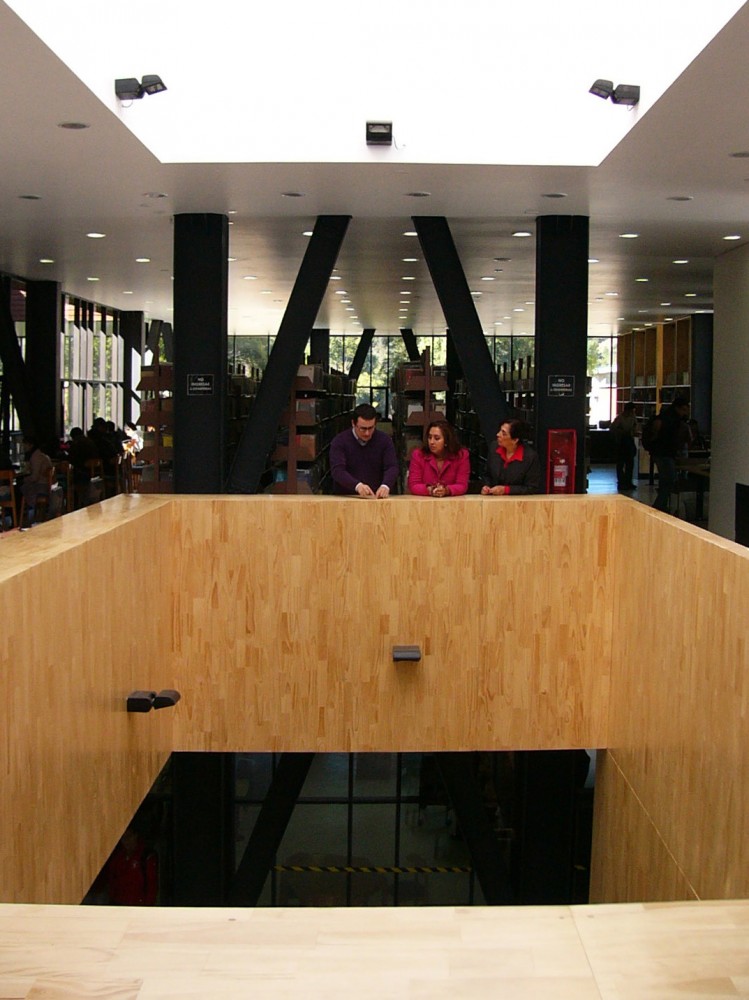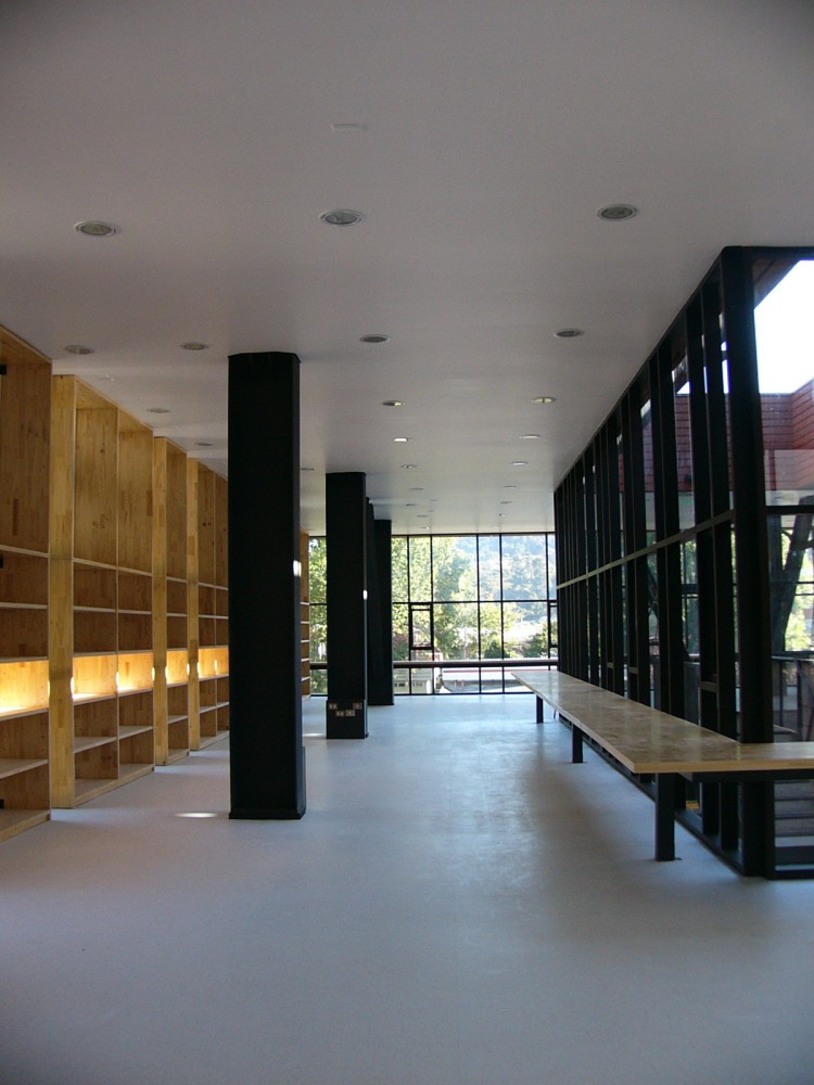 A operação principal consistiu em trabalhar um volume suspenso em madeira. Seus extremos se abrem para as folhagens das árvores e foram feitas aberturas verticais em suas faces laterais, ritmando com a sua luz o caminhar. Modelando a luz natural, subtraem-se três vazios verticais, reinterpretando os pátios da biblioteca anterior, inundando de luz zenital o interior e o corredor exterior.