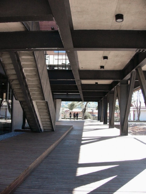 Em resposta à baixa qualidade do solo argiloso, projetou-se uma estrutura predominantemente em aço, explicitando sua resistência a terremotos, por meio de suas diagonais, buscando uma expressividade em que a arquitetura será pouco mais do que sua estrutura, tal como os trabalhos de Max Bill em suas esculturas constituídas por somatórias de pilares e vigas.