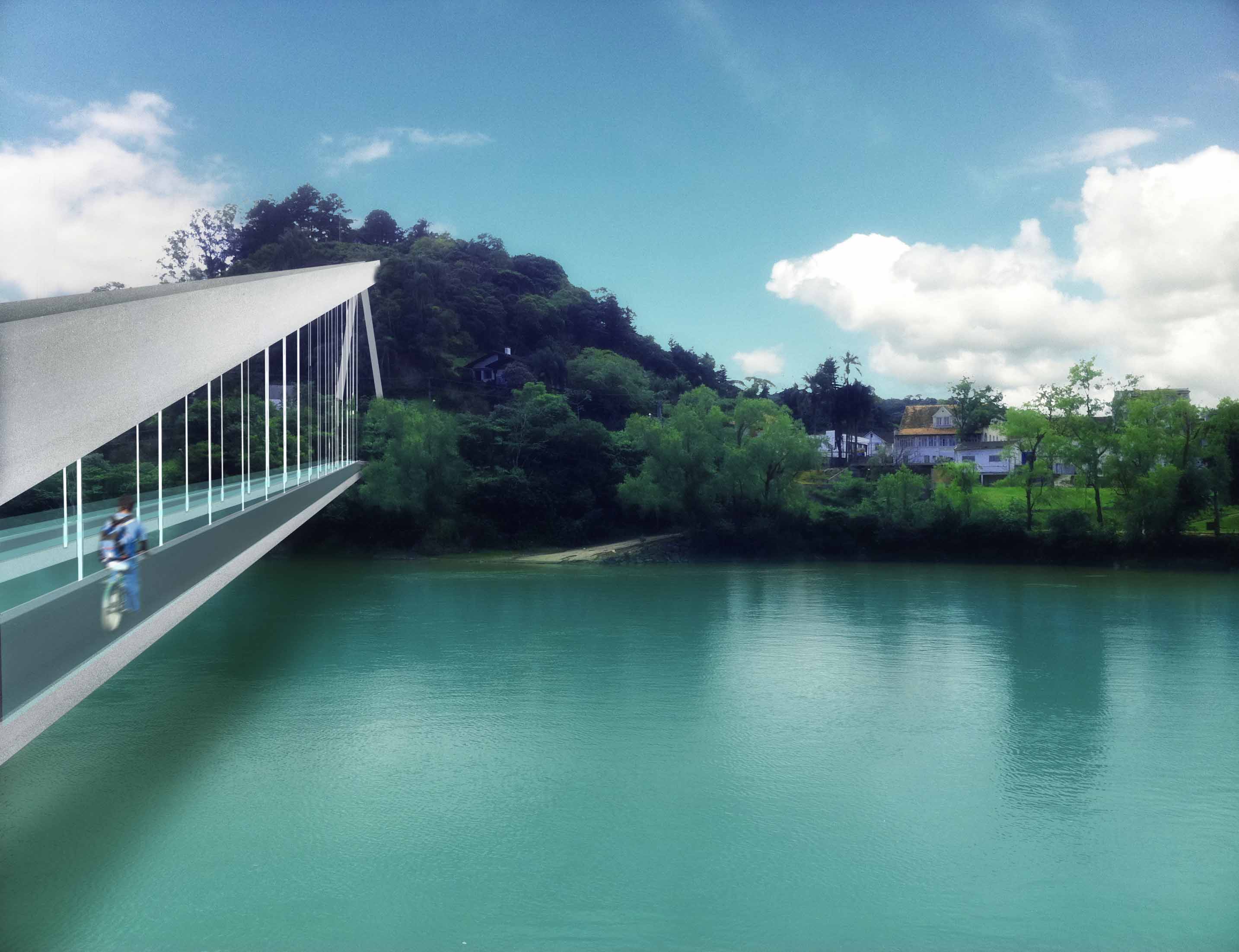 Na base da ponte propõem-se uma passarela com rampas passando por baixo do tabuleiro, na cota 11,40 para servir de passagem, mas também para implantar um memorial das enchentes, lembrando as passagens mais dramáticas de Blumenau. Este espaço será um espaço de apreciação do rio, e para ressaltar o valor do rio e o respeito a natureza que tanto colaborou para a formação da cidade.