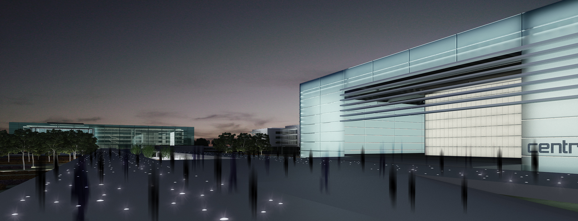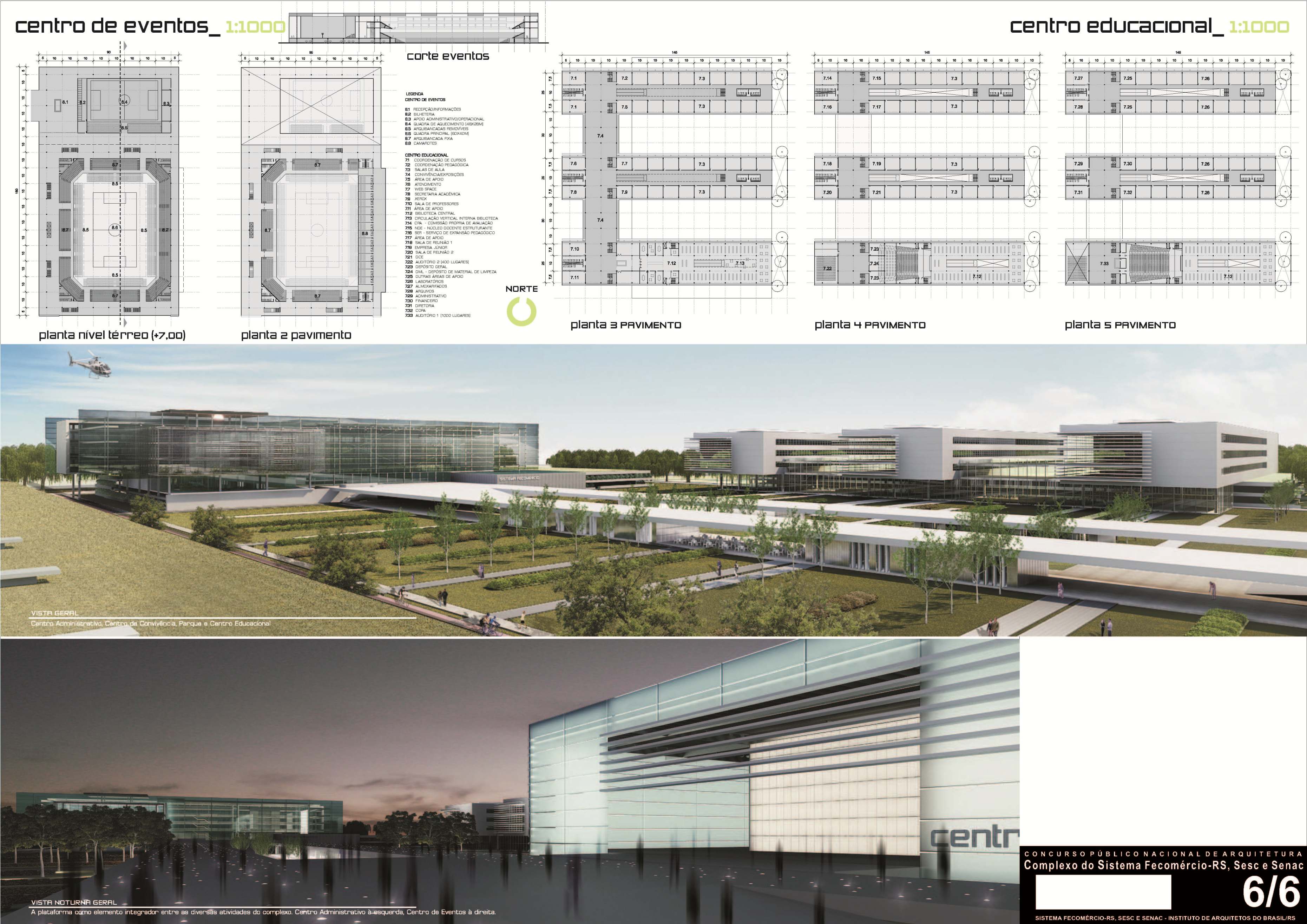 O Centro de Eventos foi localizado logo no acesso principal para maior facilidade de escoamento. O Centro Educacional foi zoneado a leste do terreno, permitindo uma expansão mais livre e de fácil ajuste às necessidades contemporâneas das futuras edificações que ali virão.