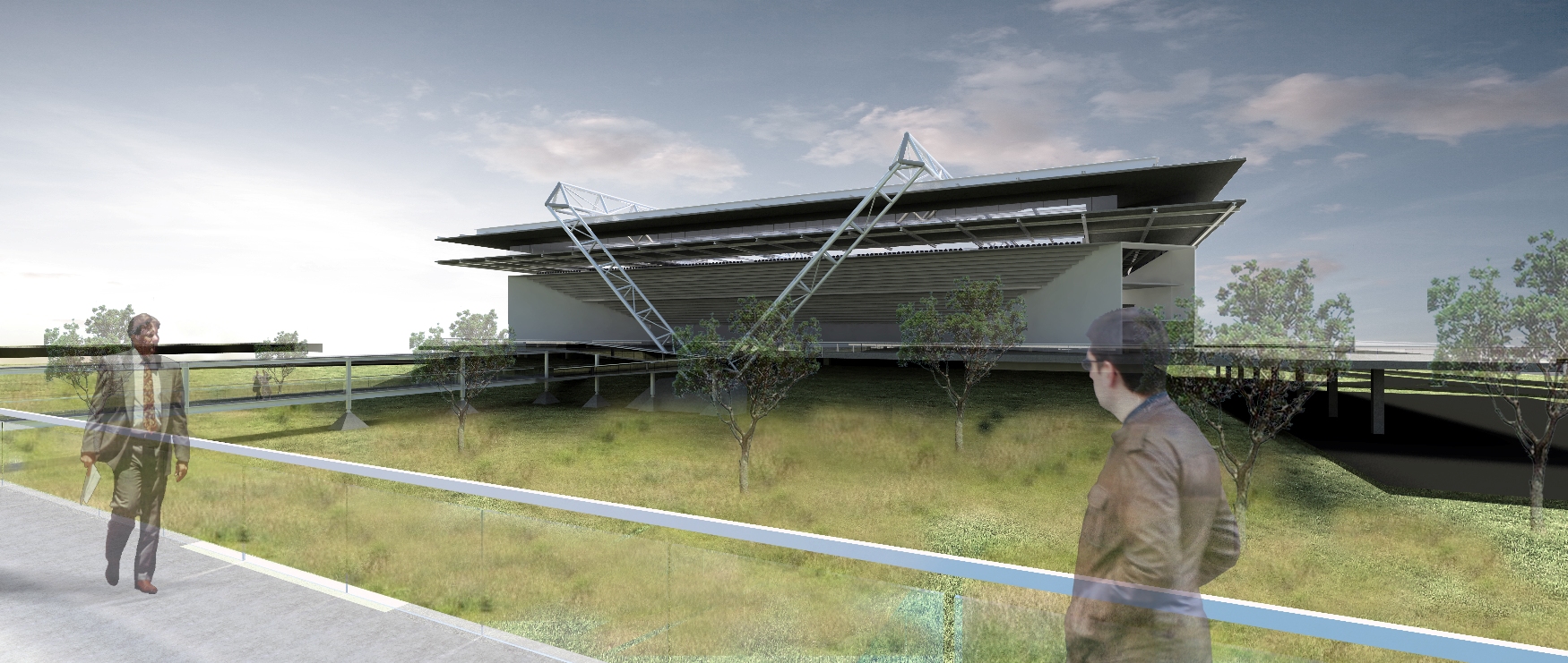 Escala: Busca valorizar o homem junto a natureza. A via, eixo de circulação onde tudo se conecta, procurou estar em uma cota intima, de aconchego, posicionada entre os taludes, proporcionado uma paisagem singular. As quadras utilizam de cobertura verde, elas estão em uma cota mais elevada que abrem as visuais para o horizonte, a cidade, a rodovia, enfim, o meio em que está inserido.