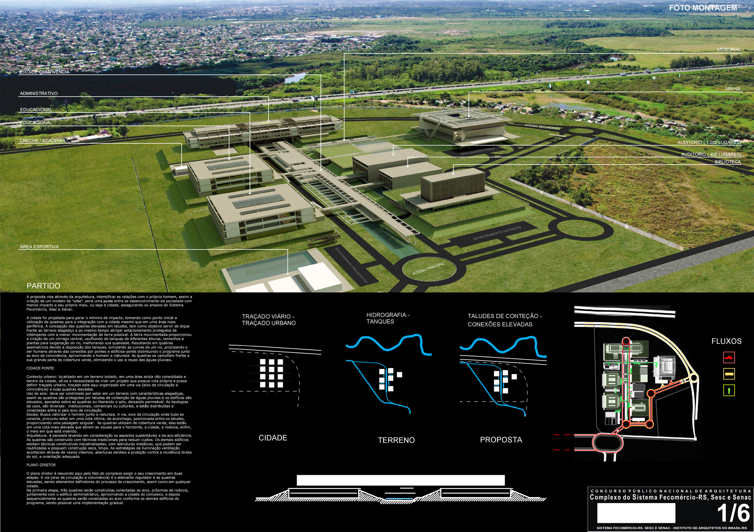 A proposta visa através da arquitetura, intensificar as relações com o próprio homem, assim a criação de um modelo de “urbe”, seria uma ponte entre os desenvolvimento da sociedade com menos impacto e seu próprio meio, ou seja a cidade, assegurando os anseios do Sistema Fecomércio, Sesc e Senac.