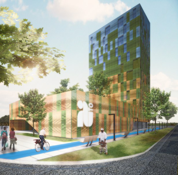 A idéia de uma edificação que se valorize, reflita a natureza do estado do Tocantins e não“ofenda” sua vizinhança (mesmo que ainda não exista) esteve presente desde o início do processo de evolução formal da edificação. A escolha de uma “pele” brisada com placas em terracota de 0,90 x 3.5m sub divididas em 5 partes com aberturas prototipadas e design inteligente buscam o máximo de eficiência térmica e conforto visual.