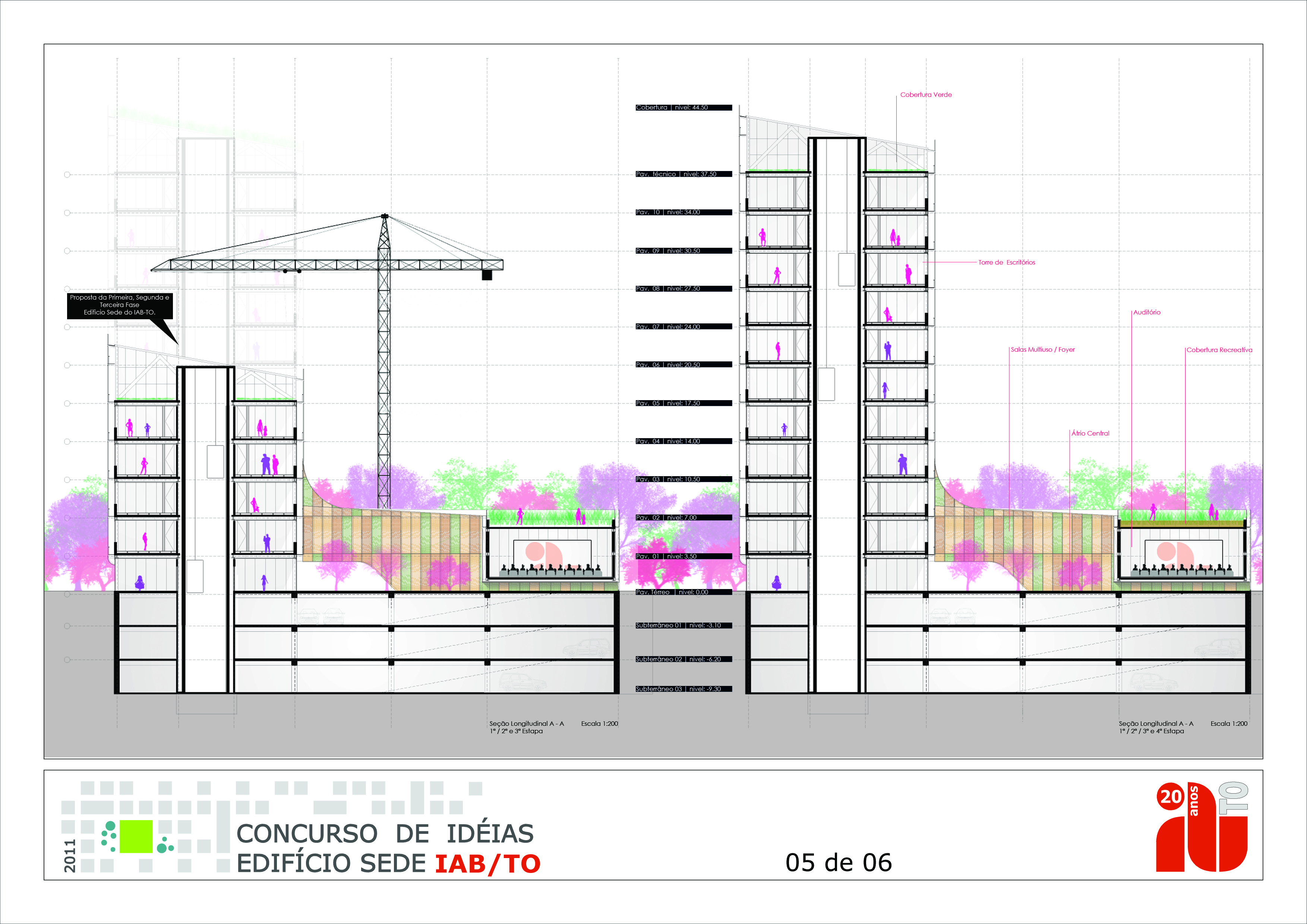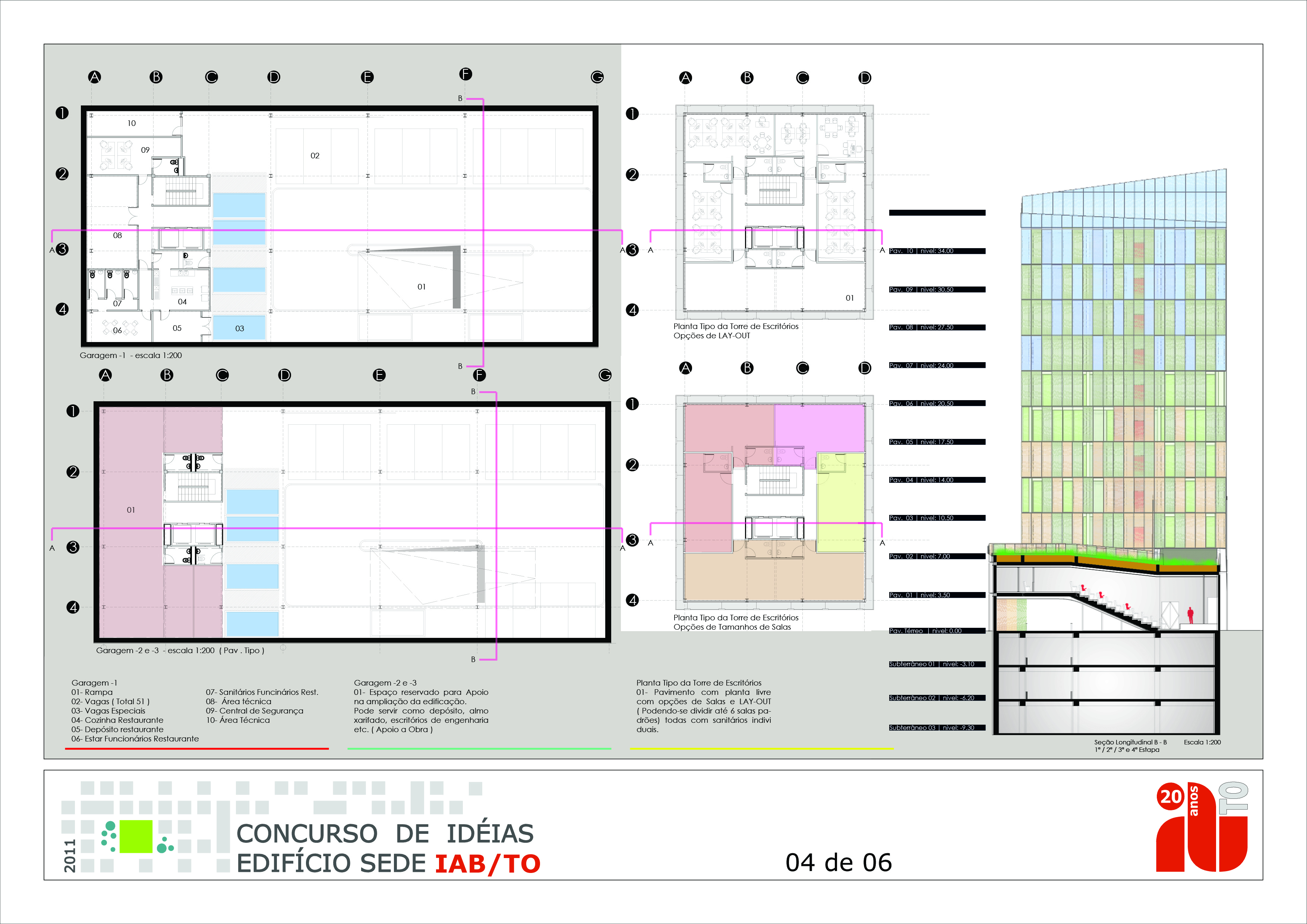 Seguindo o programa e as fases determinadas no edital para o desenvolvimento da edificação, foi disposto no terreno dois blocos distintos. O primeiro predominantemente horizontal e o segundo predominantemente vertical, ambos com sistema estrutural e garagens integradas.