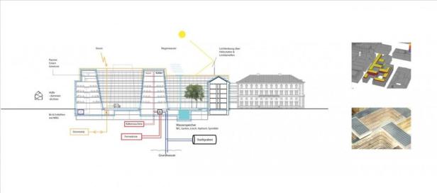 A nova sede da Siemens, segundo os autores, também se destaca como um projeto de vanguarda em “design sustentável”, em especial no contexto urbano. O objetivo do projeto é superar os padrões de hoje para a “construção verde”, como DGNB Gold e Platinum LEED. Novas tecnologias desenvolvidas pela Siemens são incorporadas ao projeto para garantir um ótimo desempenho ao longo da vida do conjunto edificado.