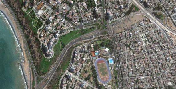 O terreno está localizado entre a queda na Armendariz, a via expressa do Paseo de la República e Avenida Redoubt, no distrito de Barranco, Lima, e tem uma área de aproximadamente 14,000 m2.
