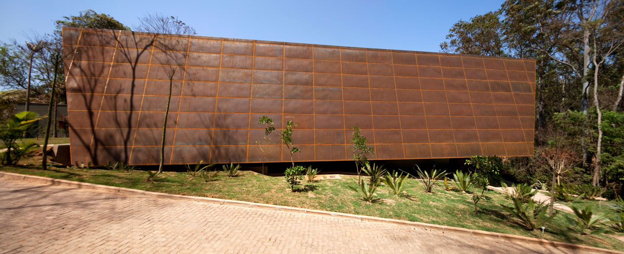 A fim de reforçar o caráter mineral do bloco principal, pretendido pelo artista que dá nome à galeria, sua construção utiliza estrutura metálica com vedação em aço Usisac com acabamento patinado natural. A pátina favorece sutis variações de cor e textura das superfícies, acentuadas pela ação do tempo e das intempéries. Para reforçar tal característica, o projeto procurou reduzir ao mínimo a presença de atributos arquitetônicos tradicionais, tais como portas, janelas, paredes, telhados, tratando a volumetria com intencional abstração e aplicando sobre o volume principal uma sutil deformação através de inclinações variadas dos planos de vedação.