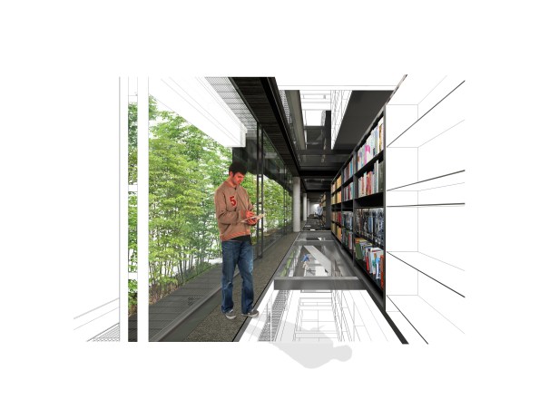 Este projeto da biblioteca universitária continua de obras anteriores para construir a privada sem fins lucrativos Universidade Diego Portales. Fundada em 1982, a universidade no centro de Santiago tem mais de 1.300 docentes e 11.000 alunos com programas nacionalmente reconhecidos no mundo dos negócios, direito, psicologia e jornalismo. O projeto atende às demandas da situação densa, com um layout multi-piso e elementos que trazem adicionalmente a luz natural e o ar fresco para o edifício ou fornecem espaços de retiro, como o telhado verde. Tanto com os materiais de refletir e o plantio intenso, como o pátio interno tem funções de fonte de luz. A característica mais visível da Biblioteca Central da Universidade Diego Portales é um verde fachada, que funciona como um filtro solar – enquanto ao mesmo tempo, melhora as credenciais “verdes” promovido pela universidade. O edifício será o primeiro no Chile para atender a certificação LEED Gold standard.