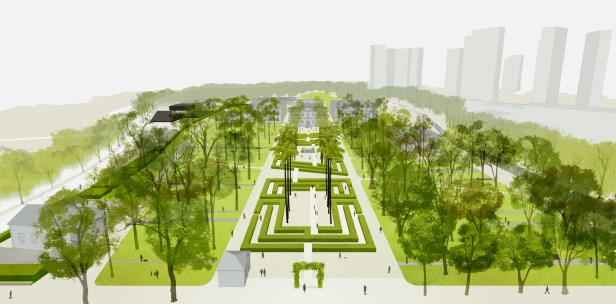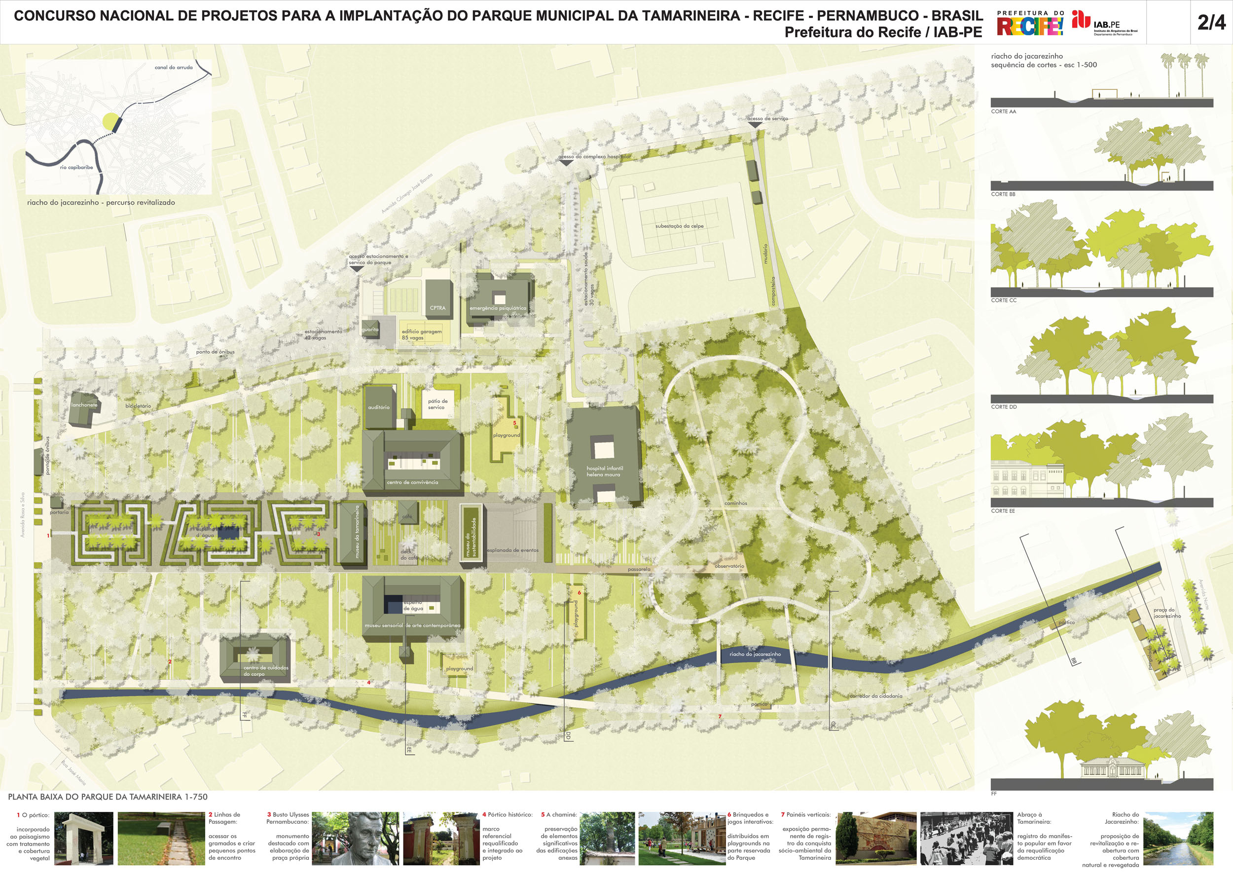 A fim de evitar a segregação espacial e garantir comunicação fluida e direta, as intervenções realizadas buscam clarificar a leitura do Parque e das construções históricas mais significativas através da remoção de barreiras e anexos sem qualidade arquitetônica. Dois grandes eixos – que funcionam como largos passeios públicos – estendem-se desde a entrada principal do Parque, na Avenida Rosa e Silva, até a “Matinha”, valioso exemplar de biodiversidade preservado há décadas. Entre estes eixos, um labirinto de vegetação arbustiva faz alusão à complexidade dos percursos da mente humana e constitui-se no elemento paisagístico mais forte do projeto: sua estrutura abrigará obras de arte, bancos, espelho d’água e peças interativas que estimularão o caminhar e a descoberta. Extensos gramados remontam a antiga atmosfera de Sítio, de Pomar Urbano, enquanto playgrounds e equipamentos destinados à prática de exercícios físicos dão dinâmica aos diversos setores do Parque.