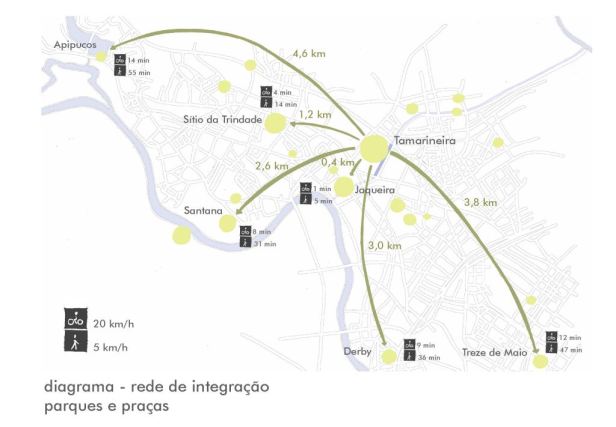 Sob o aspecto urbanístico, o Parque Público da Tamarineira deverá fazer parte da rota de integração de parques, prevendo a conexão com o Plano Municipal de Parques e o Projeto Capibaribe Melhor. Sugere-se a criação de rotas lindeiras à margem norte do Rio Capibaribe, associadas e compartilhadas a modais não motorizados, o que inclui a melhoria da circulação de pedestres e o incentivo ao uso de bicicletas como equipamento de deslocamento. O foco principal desta integração é promover melhoria significativa na qualidade de vida e estimular a apropriação do espaço público pela população recifense.