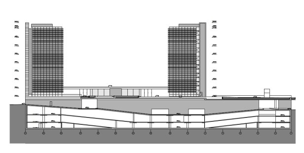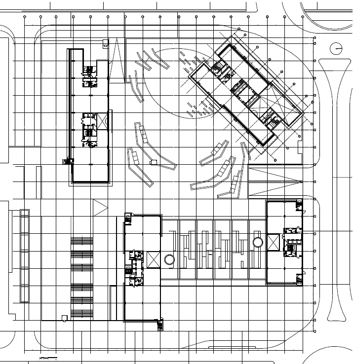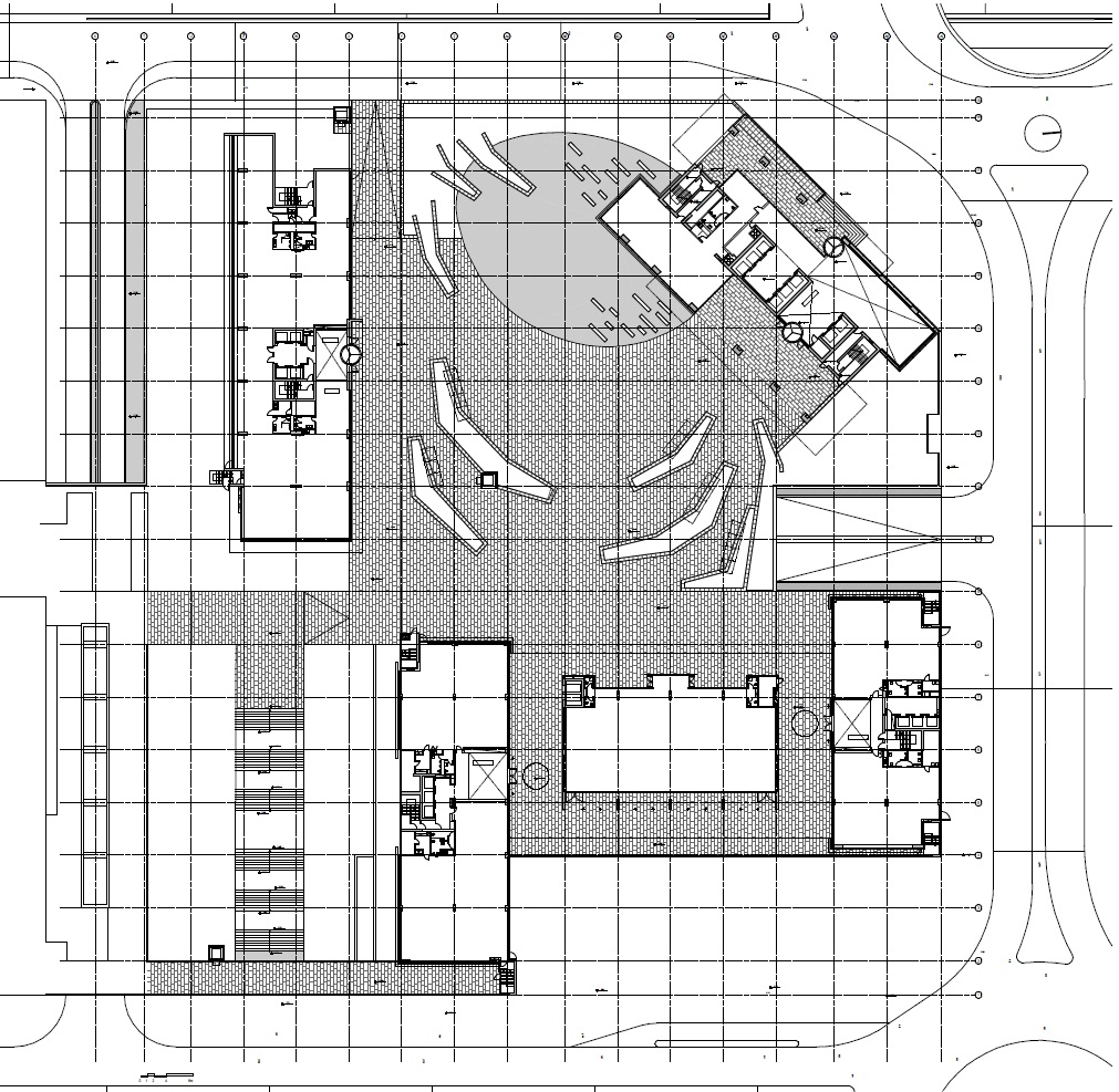 A sua articulação processa-se através de uma praça de chegada com cariz mais urbano e que encerra as funções mais institucionais do complexo. Esta praça urbana, local de encontro, está ainda enquadrada por mais três blocos relativamente elevados e ainda pelo Centro de Reuniões.