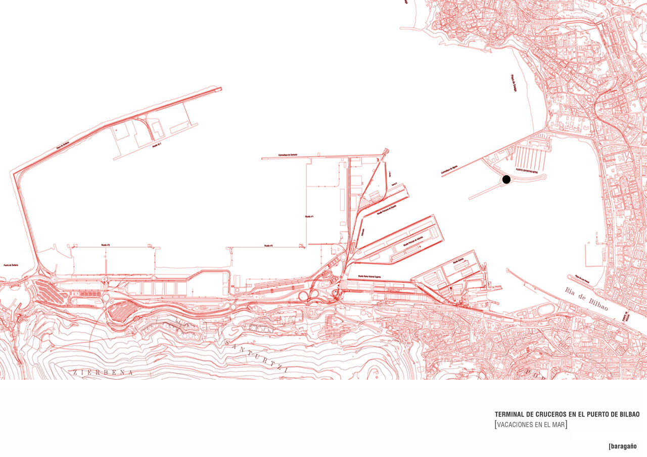 O porto de Bilbao lançou um concurso no final de 2009 com objetivo de construir um novo terminal para cruzeiros em Bibao. A úmida cidade, com memória relacionada à indústria do aço, com estaleiros, gruas, e áreas pós industriais e pontes de suspensão. O projeto parte de um prisma octogonal metálico, e a partir daí se desenvolve como se fosse uma escultura. A construção começou abrindo para o oceano, com uma larga fachada de cristal. Para o sul da cidade, os volumes são muito mais opacos, emoldurando as formas e atraindo as luzes do norte que vêm da construção através das grandes clarabóias. O projeto começou sendo estruturado por grande containers com diferentes volumes e comprimentos. A ideia parte da relação de cheios e vazios, por referência aos escultores Bascos (Chillida, Oteiza), introduzindo o programa do Terminal dentro dos containers, e mantendo os espaços vazios; espaços onde se pode esperar a chegada dos navios. Espera: manter-se no lugar onde se supõe que o outro deve ir, ou alguma coisa deve acontecer. Propõem-se, portanto, diferentes espaços para diferentes formas de esperar (esperar por navios).