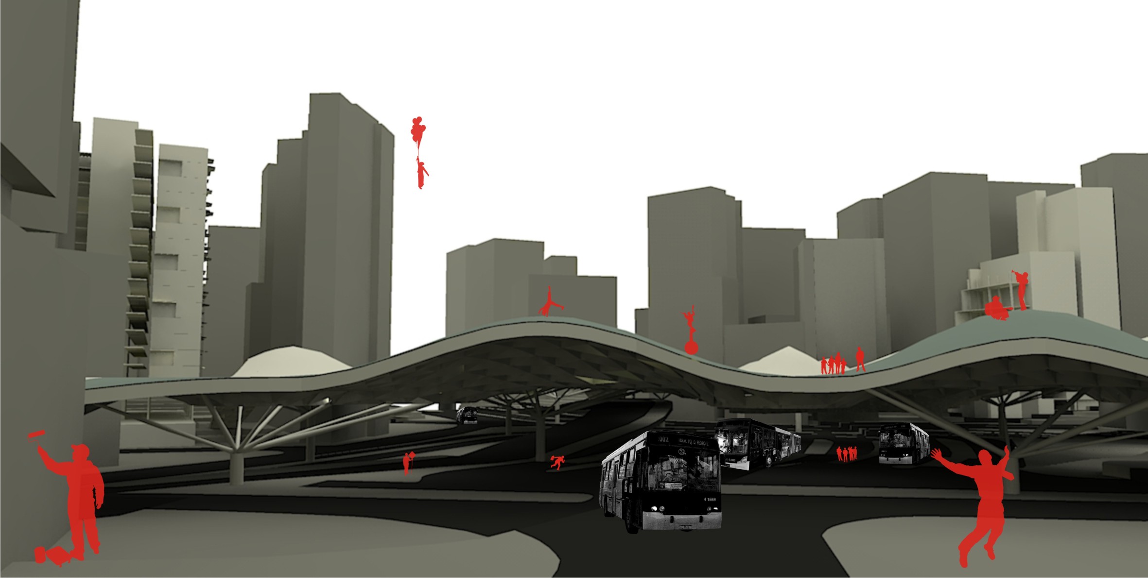 A existência torna-se a passagem entre o plano que flui e o que permanece. A memória retomada pode ser sempre razão que condensa e transforma um obstáculo em espetáculo. A intersecção em diversos níveis e o movimento continuo nas camadas agora dispostas sobre as guias do terminal confluem em um nível elevado que traduz justamente os encontros, e permite, que de fato eles se tornem possíveis.