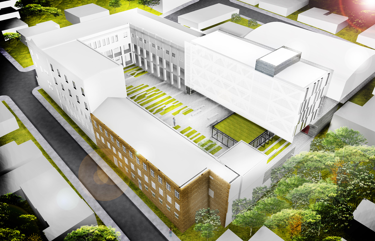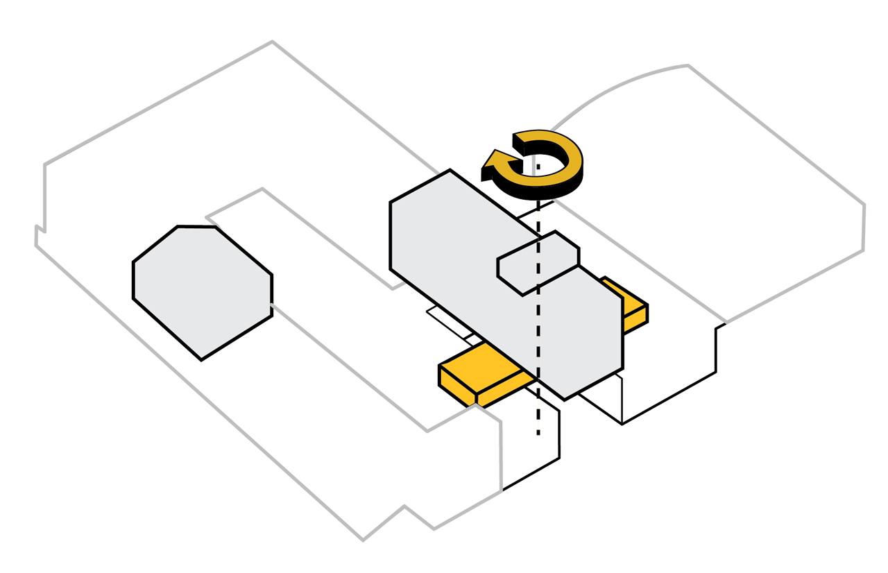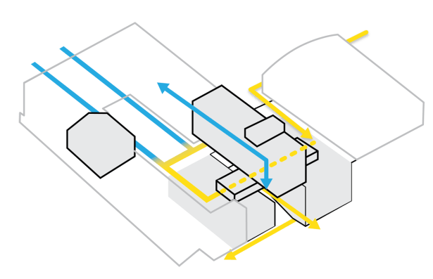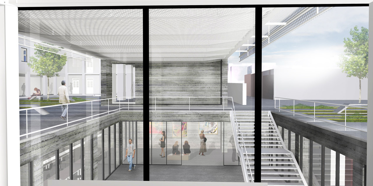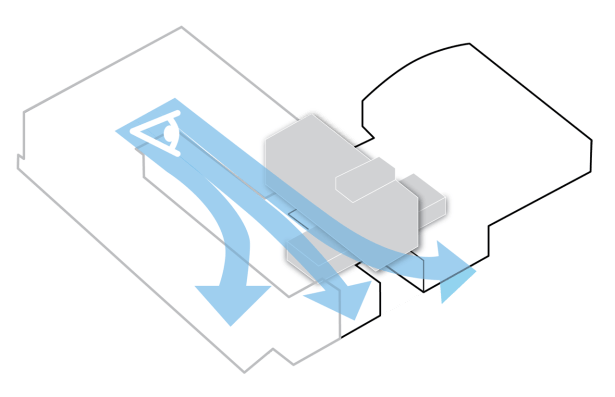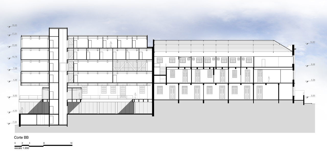 A alteração da edificação existente ocorre pela adição em sua forma tipológica, num continuo do existente e num desdobramento da cota de seu pátio.