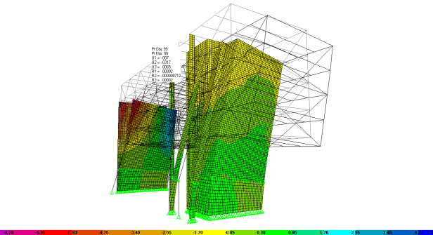 A resistência das peças propostas, bem como a estabilidade lateral e os deslocamentos verticais foram confirmados por modelagem computacional em Método dos Elementos Finitos, conforme pode ser verificado nos resultados estruturais apresentados em imagens do modelo.