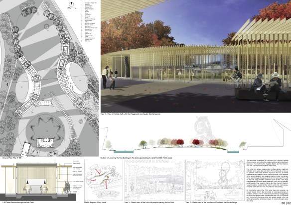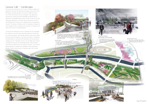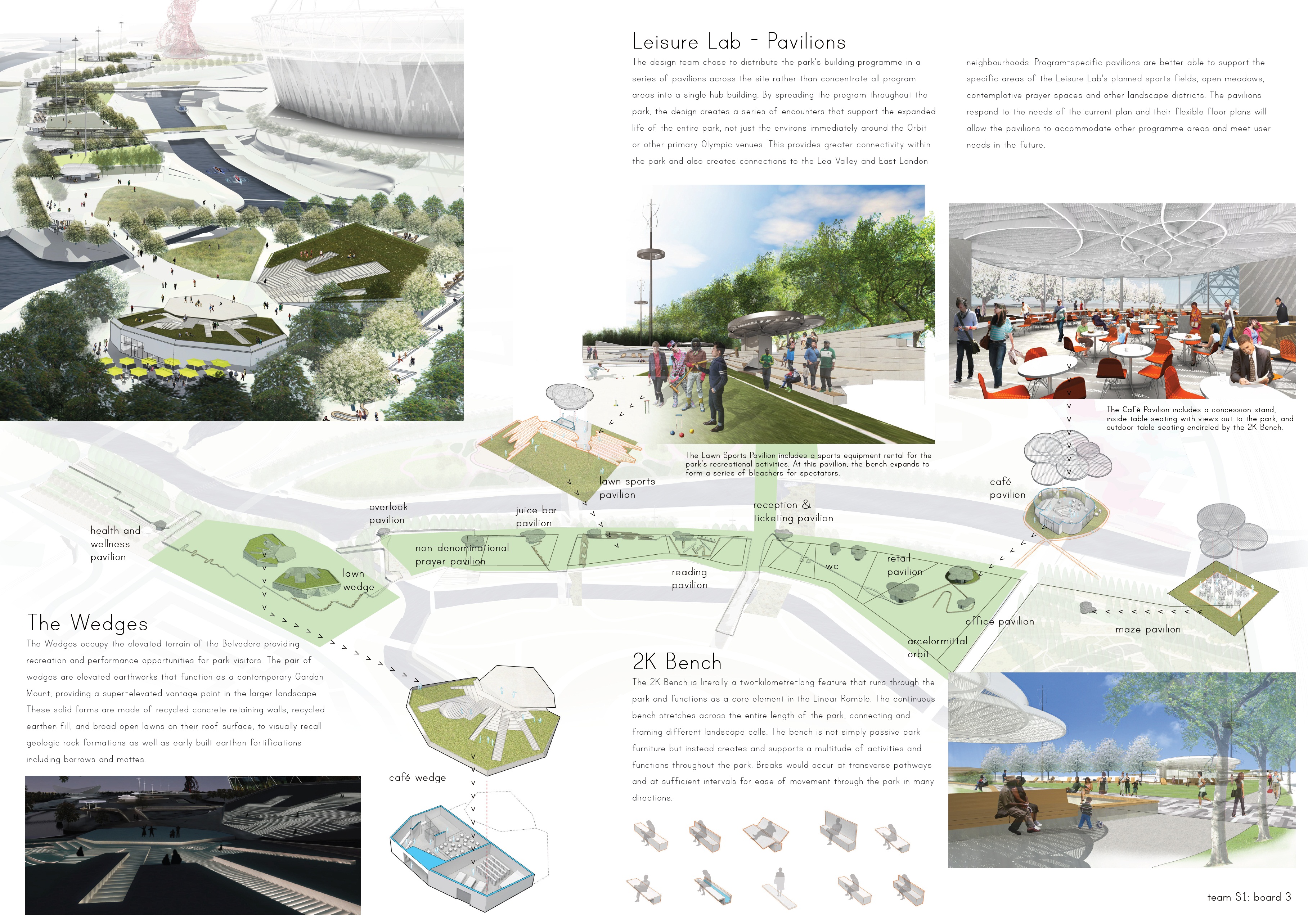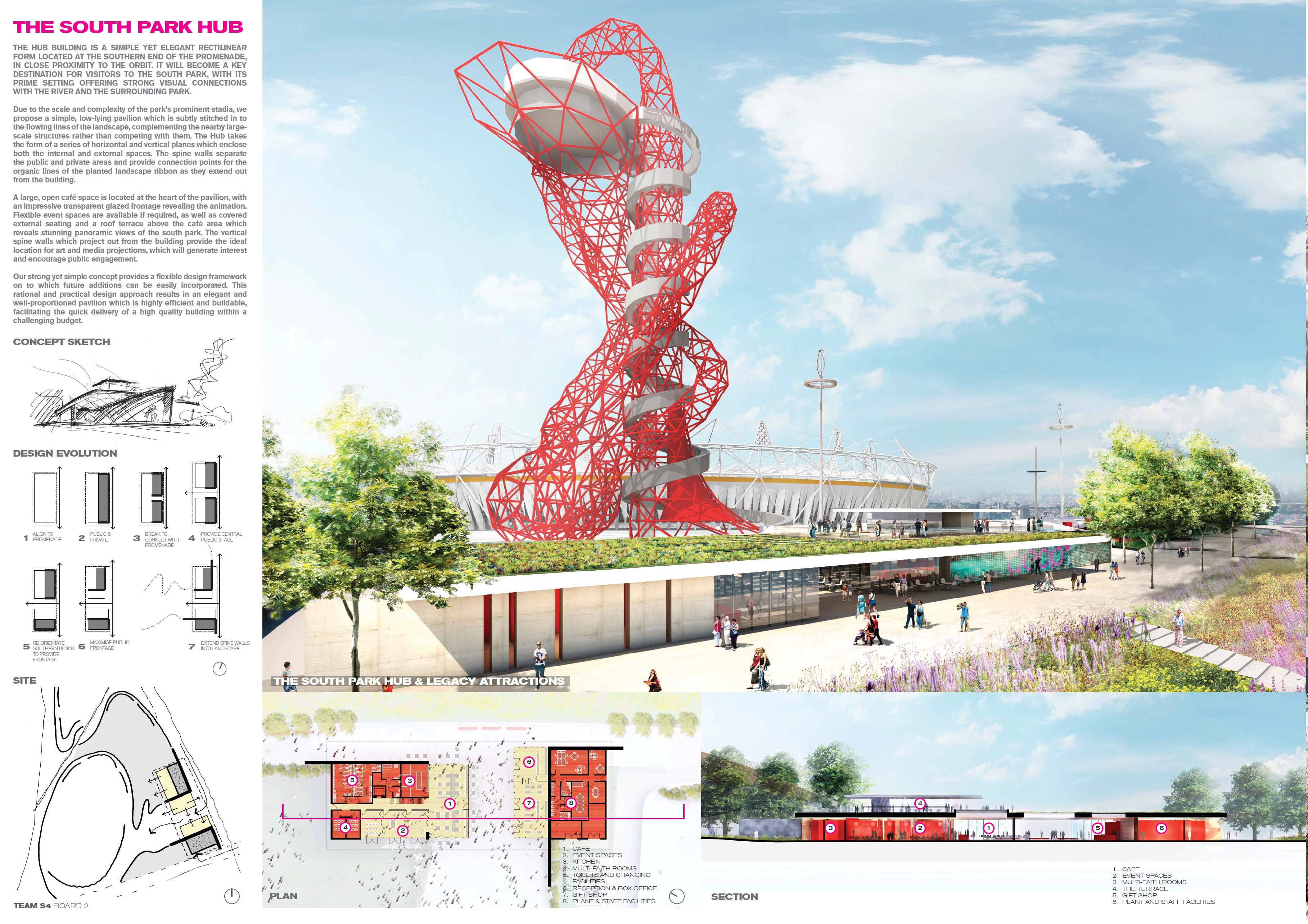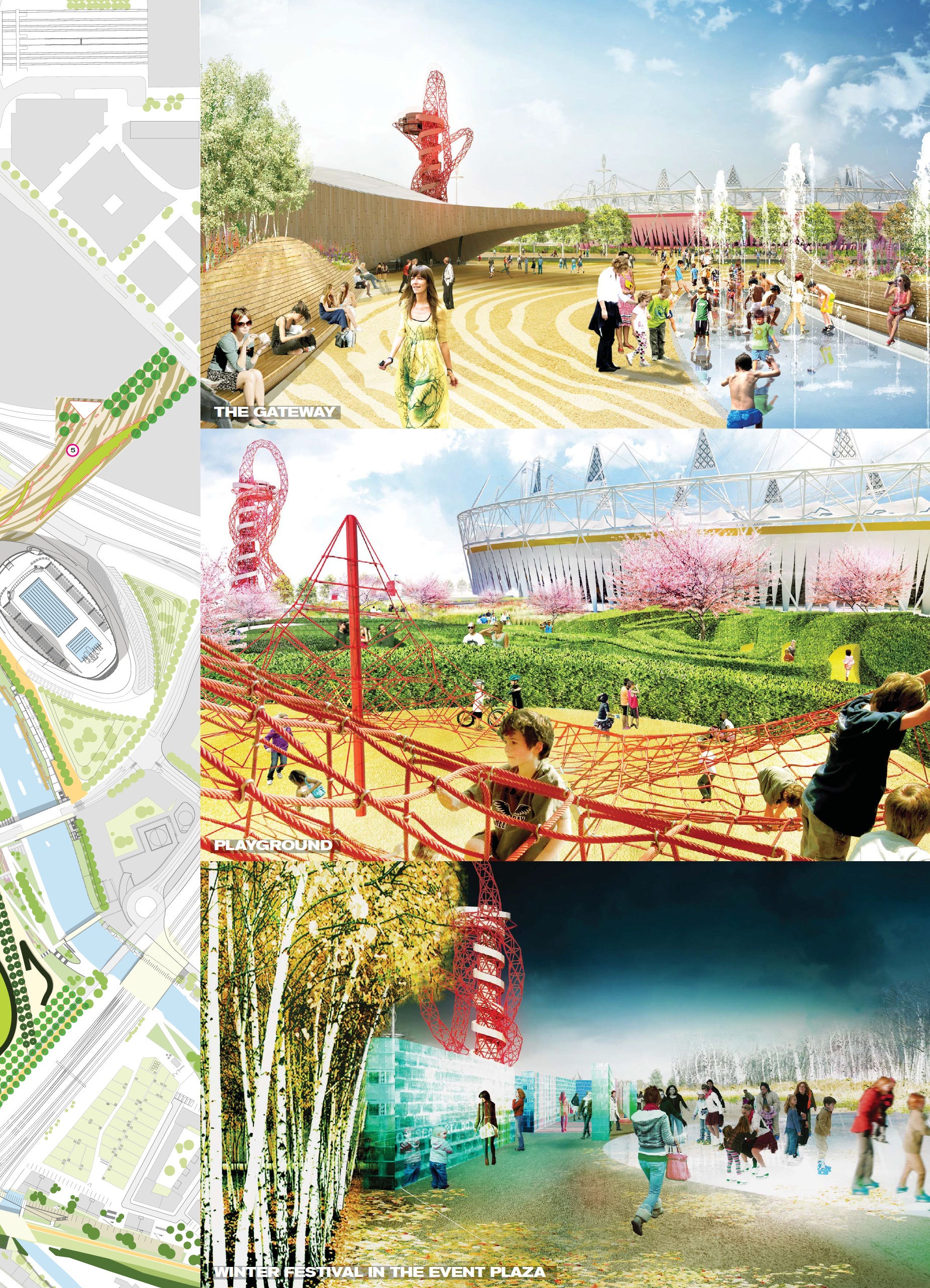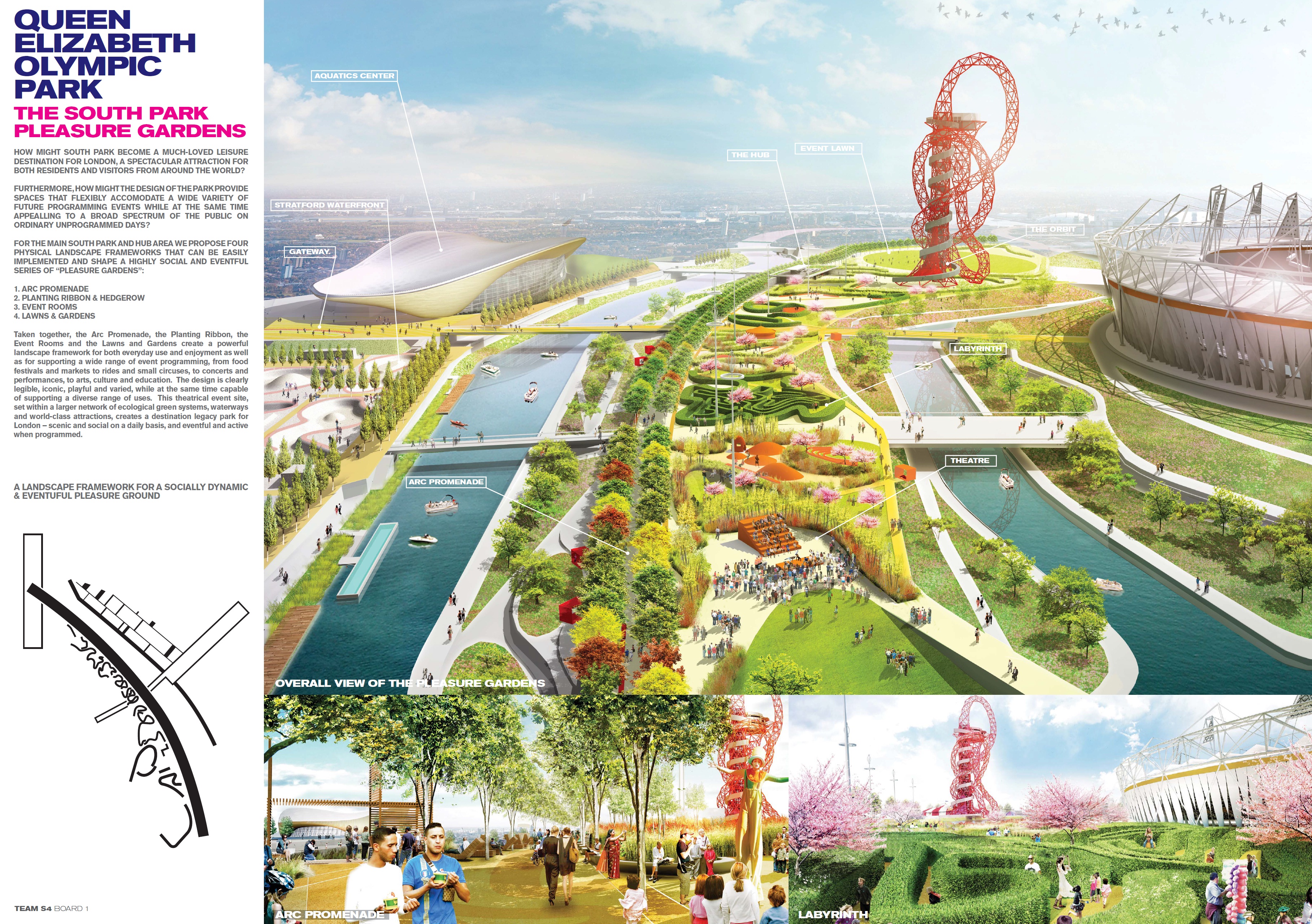 O concurso para a área sul do Parque Rainha Elizabeth (Legado do Parque Olímpico de Londres 2012), realizado em duas etapas, teve como objetivo selecionar a melhor solução para um complexo de lazer e serviços em uma área marcada por quatro atrações de destaque, existentes nas imediações: uma escultura metálica de 114 m de altura concebida por Anish Kapoor e Cecil Balmond, o Centro Aquático, o Estádio Olímpico e a área de jardins do Parque Olímpico.