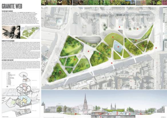 De acordo com os promotores, a proposta vencedora, apelidada de “Granite Web”, “celebra aspectos tridimensionais de Aberdeen, reinterpretando a topografia da paisagem circundante, criando estruturas e espaços graciosos, que contribuem para um desenho contemporâneo ao mesmo tempo emocionante e memorável”.