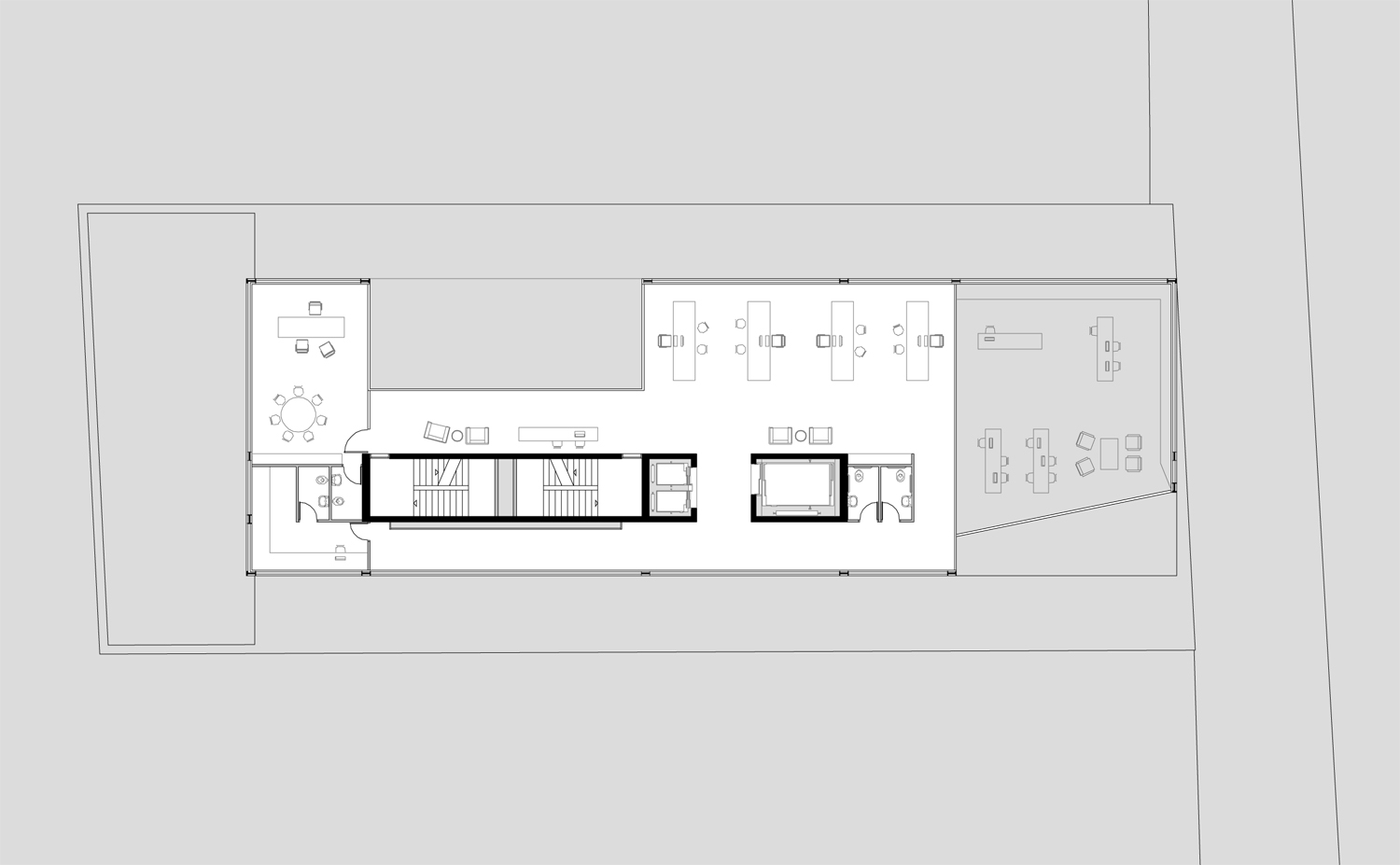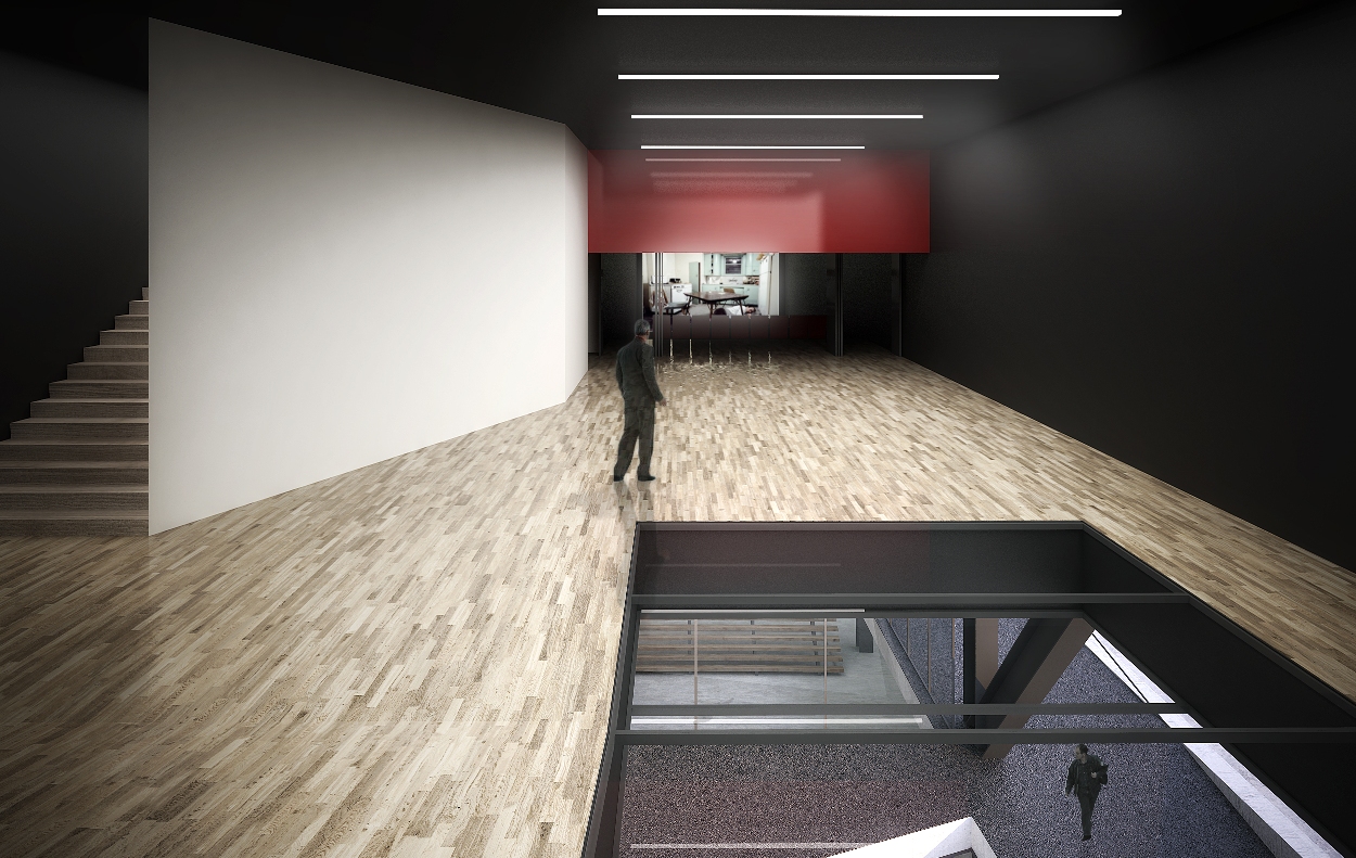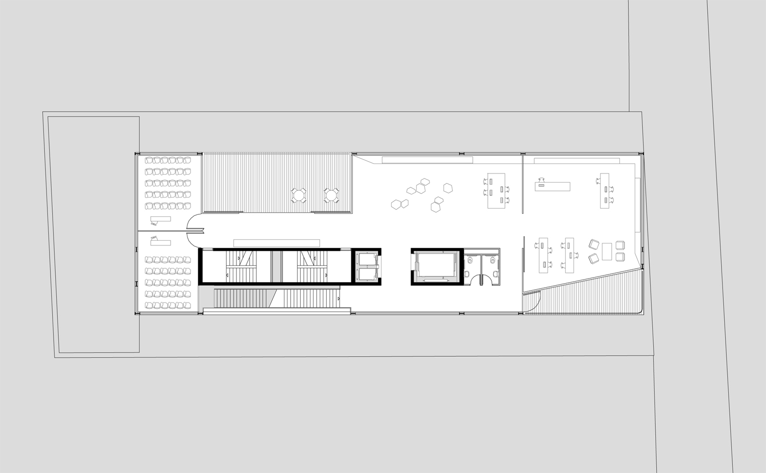 Talvez a curiosidade de quem passe se baste em olhar a imagem projetada no vidro frontal correspondente à altura do mezanino: o Pão de Açúcar por Marc Ferrez, uma fotografia de Robert Capa, ou uma imagem centenária da própria Avenida Paulista. Ou talvez olhe ainda mais para cima, pois nesse trecho avançado da laje haverá um grande vidro em que a atividade no foyer frente ao auditório trocará olhares com os olhares da avenida. Mas não só isso. O andar do foyer, de certo modo, resume o IMS. É lugar da palavra e também da imagem. Transforma-se num único espaço, abrindo-se as portas do auditório, ampliando o público de um filme ou de um debate, diluindo os limites que usualmente segregam espaços.