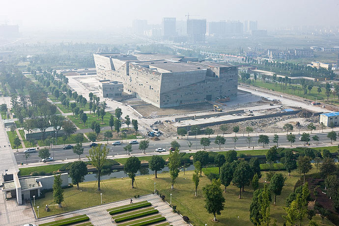 “Projetei o museu como uma pequena cidade. Eu queria que minha arquitetura comunicasse às pessoas como a cidade de Ningbo era, antes das transformações urbanas. Há dez anos, era uma bela cidade portuária. Agora, tudo está demolido. Daí tive a ideia de coletar e reciclar materiais de demolição para utilizar no projeto”.(3)