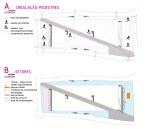 Além de articular praça e cidade, essa espinha dorsal realiza a conexão dos demais percursos de pedestres, tanto os horizontais, de acesso aos edifícios do entorno, quanto os verticais, de ligação com o estacionamento subterrâneo.