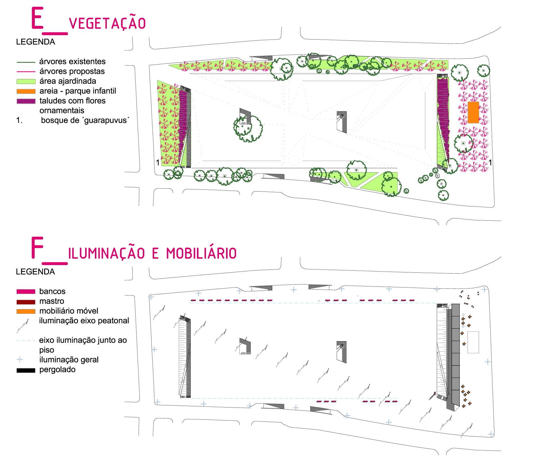 O sucesso de um espaço público pode ser medido através dos modos como as pessoas dele se apropriam. Quanto mais abertas e variadas forem suas possibilidades de utilização,maiores serão as chances de que a vida urbana encontre ali meios de ganhar corpo. Os espaços que compõem esta proposta foram desenhados a partir dessa premissa.