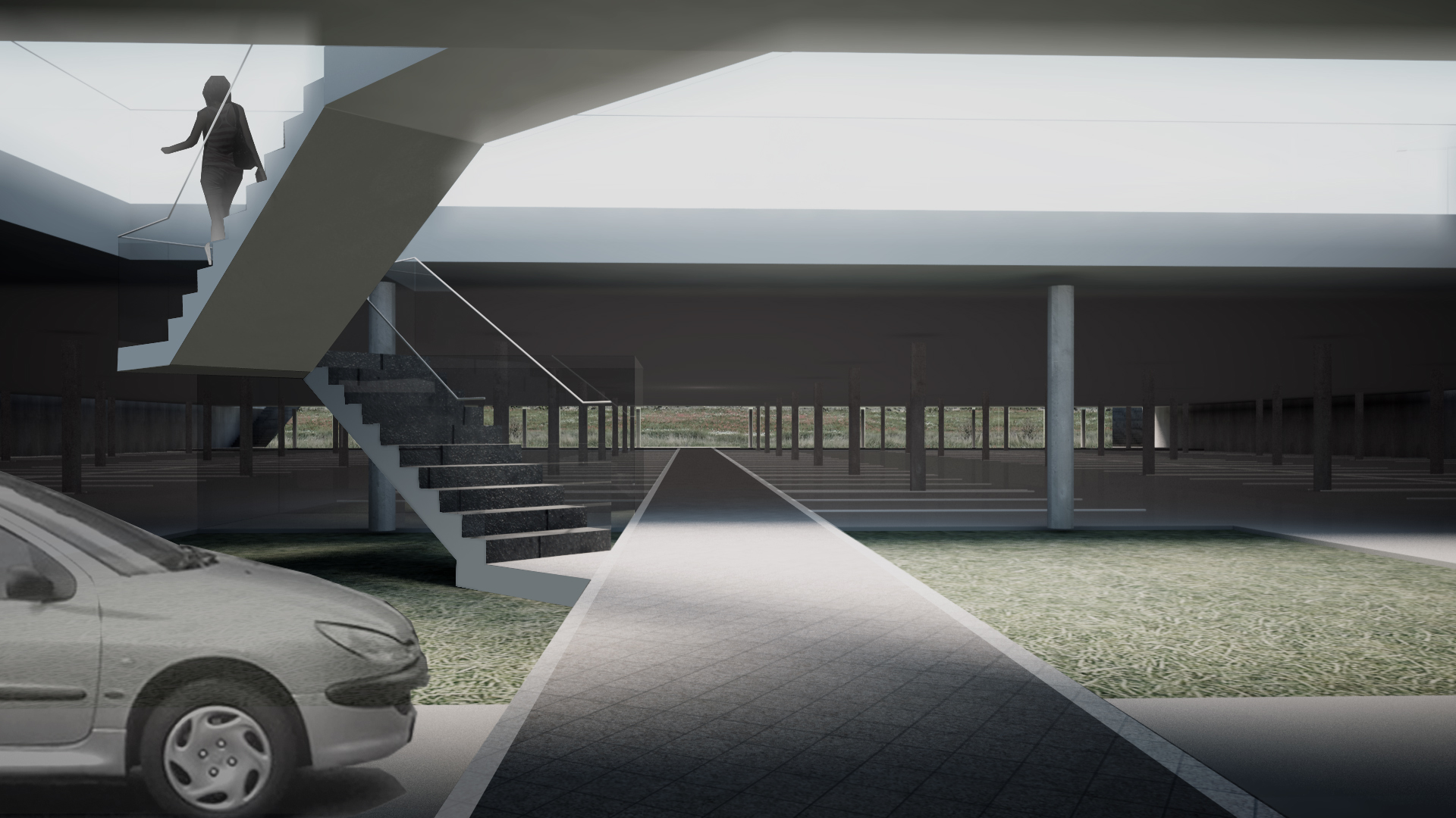 O estacionamento possui uma altura livre de 2.80 m, extensas aberturas de iluminação e ventilação e duas de suas laterais são completamente voltadas para o exterior. Estas qualidades permitem uma eventual utilização desse espaço por outros usos que possam ser desejáveis no futuro.