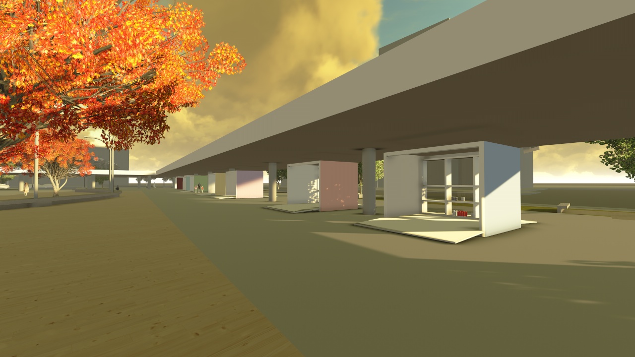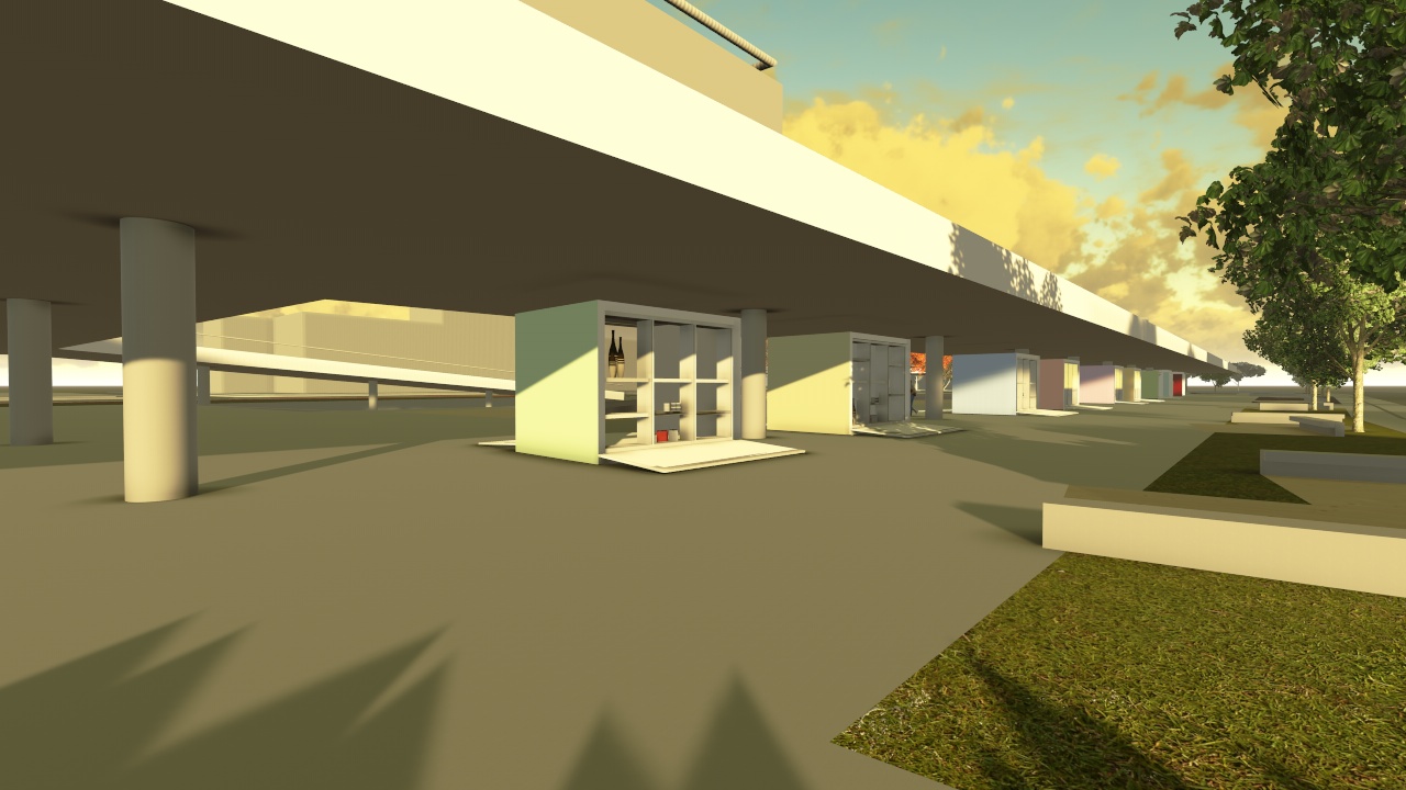 Todas as atividades, equipamentos estão vinculados a ela. É embaixo dela que as pessoas andarão, se abrigarão  das chuvas, do sol, onde farão seus exercícios físicos, descansarão, onde farão compras, tomarão lanche.