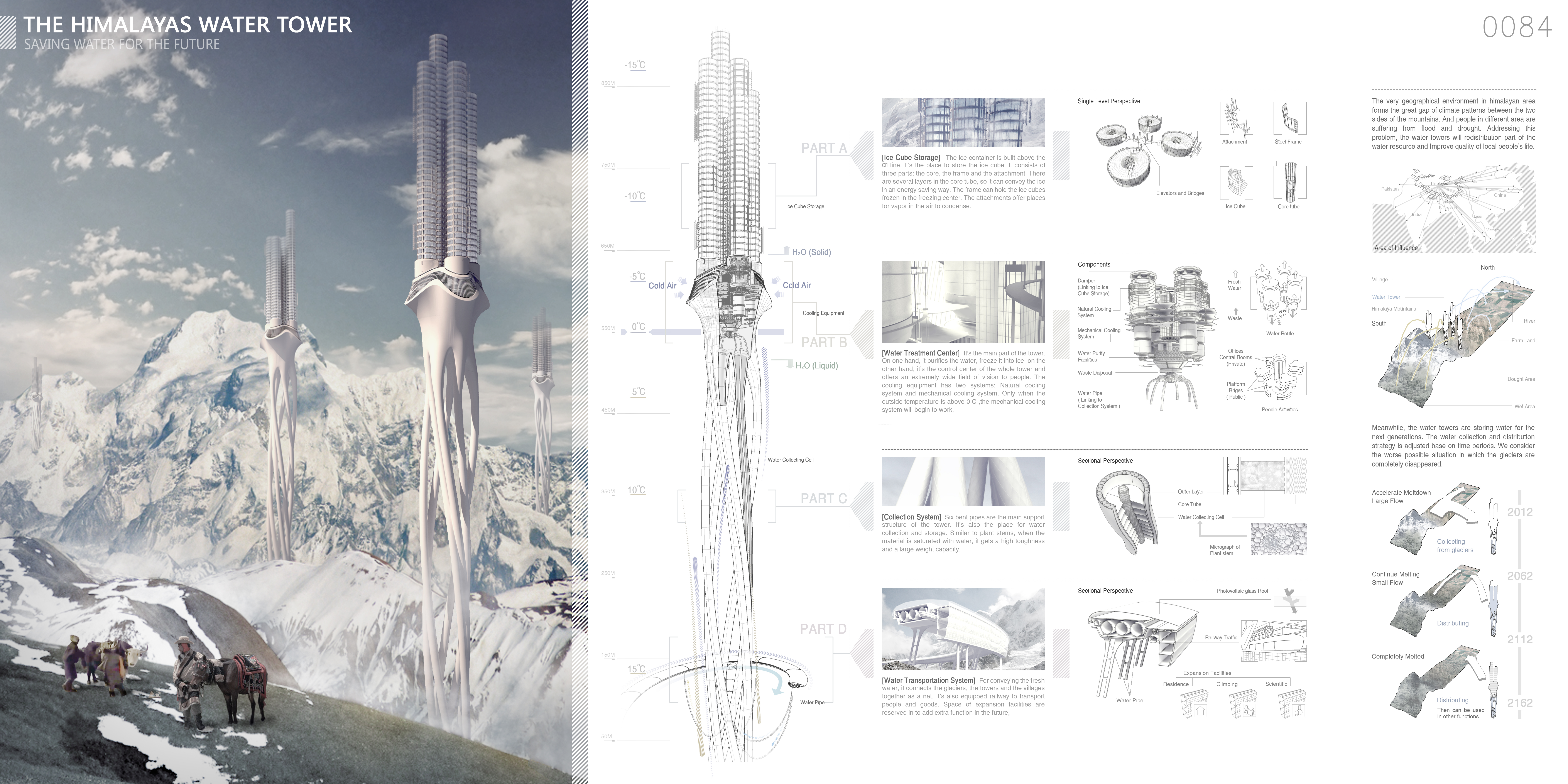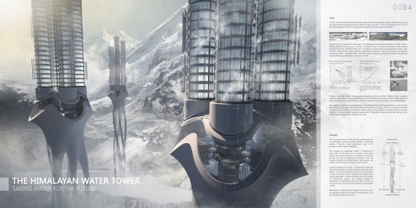 “O gelo do Himalaia – a maior torre de água do oriente – está derretendo. Vamos coletar a água e estocá-las em grandes torres drenantes (caixas d’água)!”