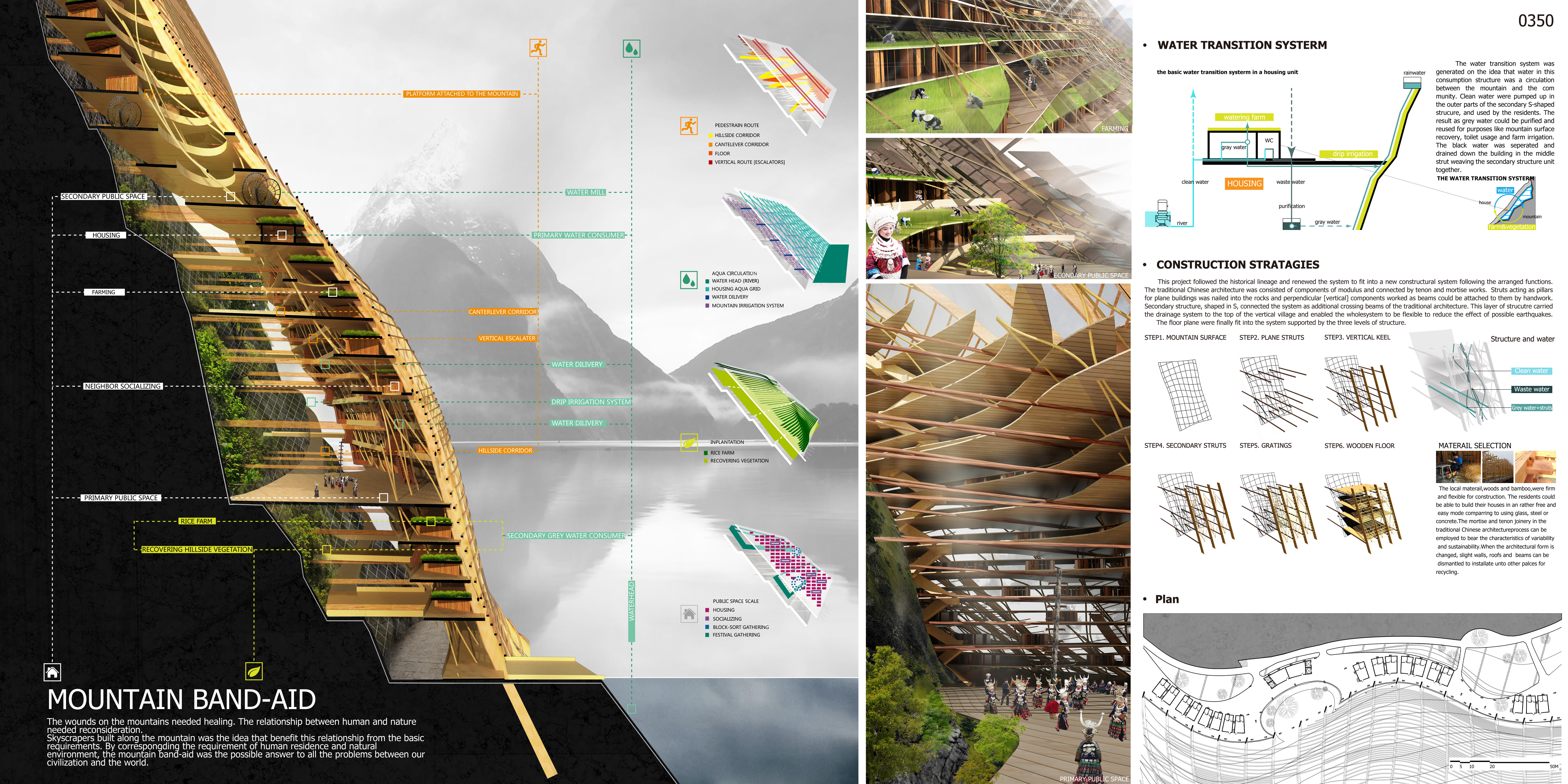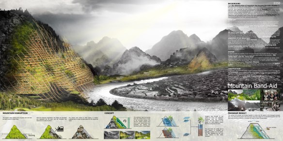 A Escola Chinesa de Arquitetura mostra toda a sua força para pensar problemas ambientais atuais e propor soluções radicais para situações-limite. Ambos os trabalhos, 1º e 2º lugar, propôem conexões e costuras com o meio-ambiente, que expressam uma forma de viver explicitamente parasita, mas que considera um comensalismo de compensação para com os enormes danos ambientais causados pela civilização contemporânea.