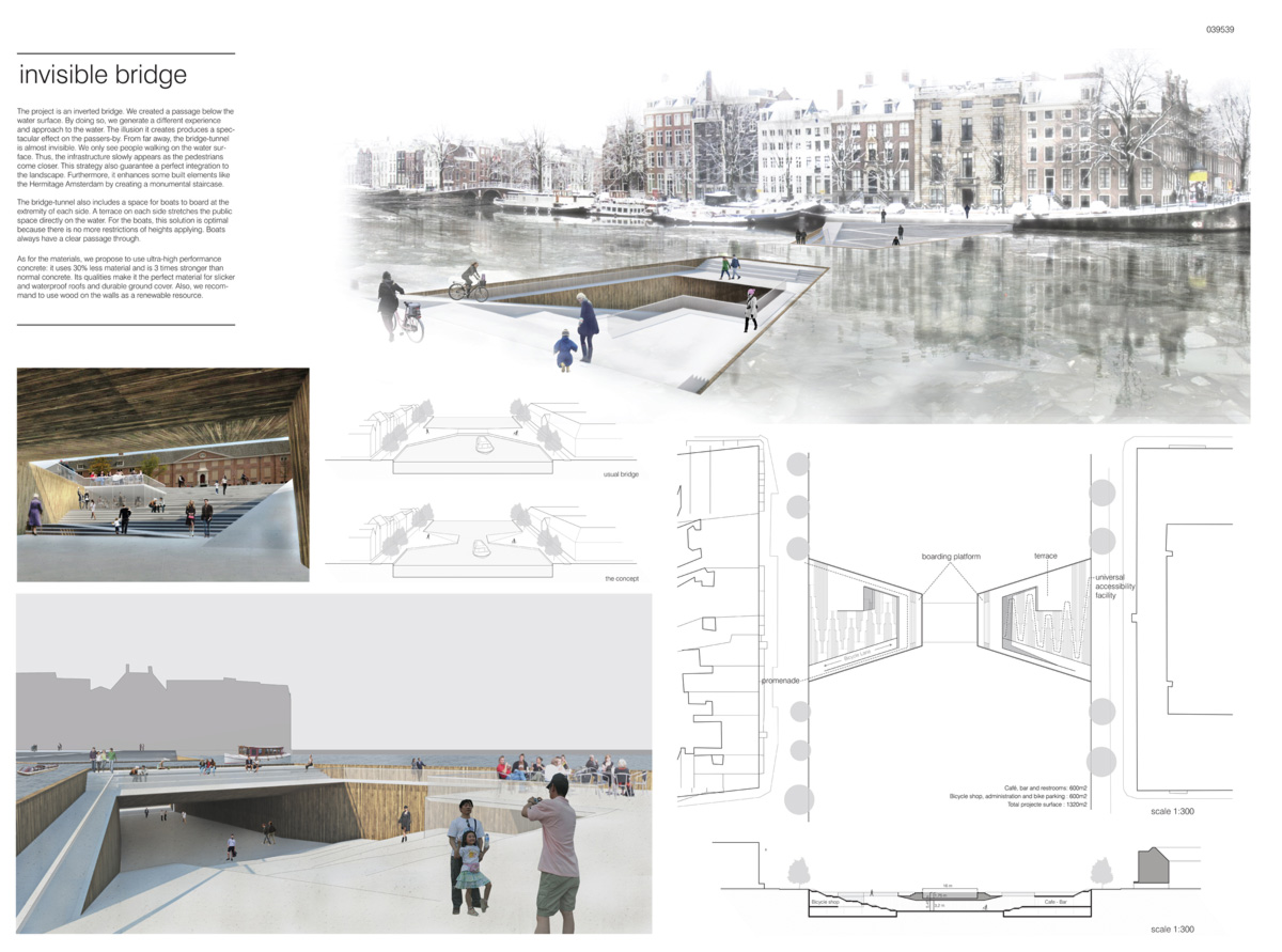Em 2011, anunciamos o Concurso Internacional de Ideias – Ponte de Pedestres em Amsterdã. Veja a seguir os premiados e as menções honrosas.