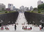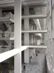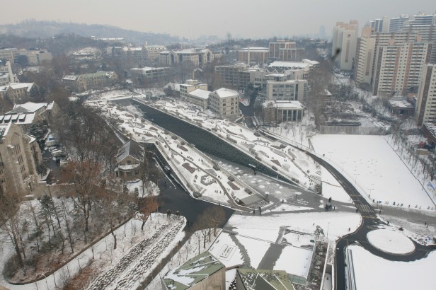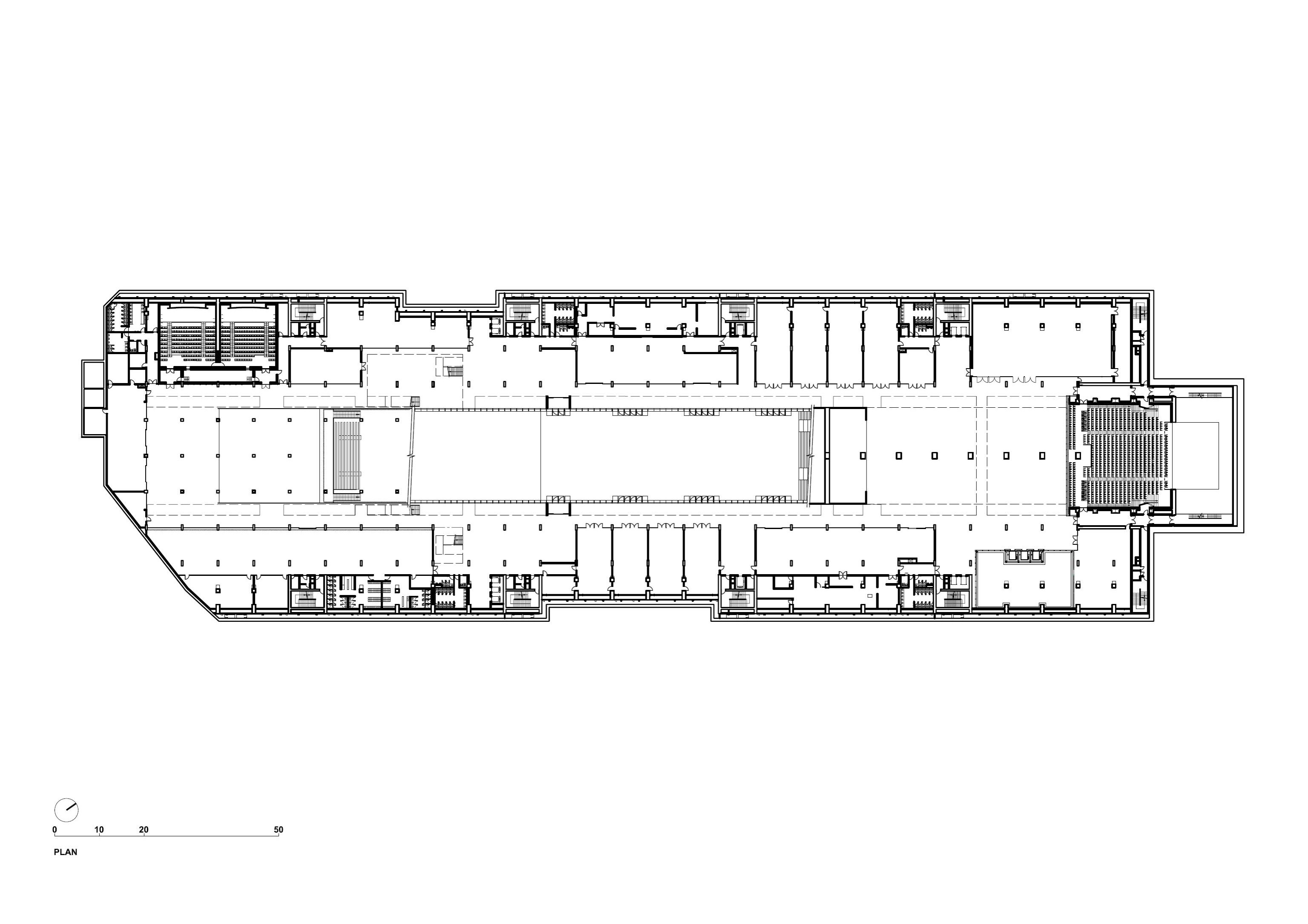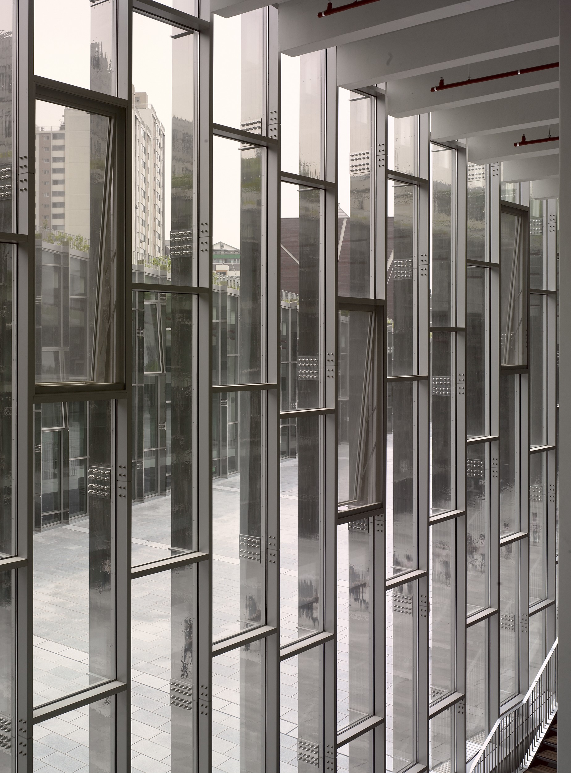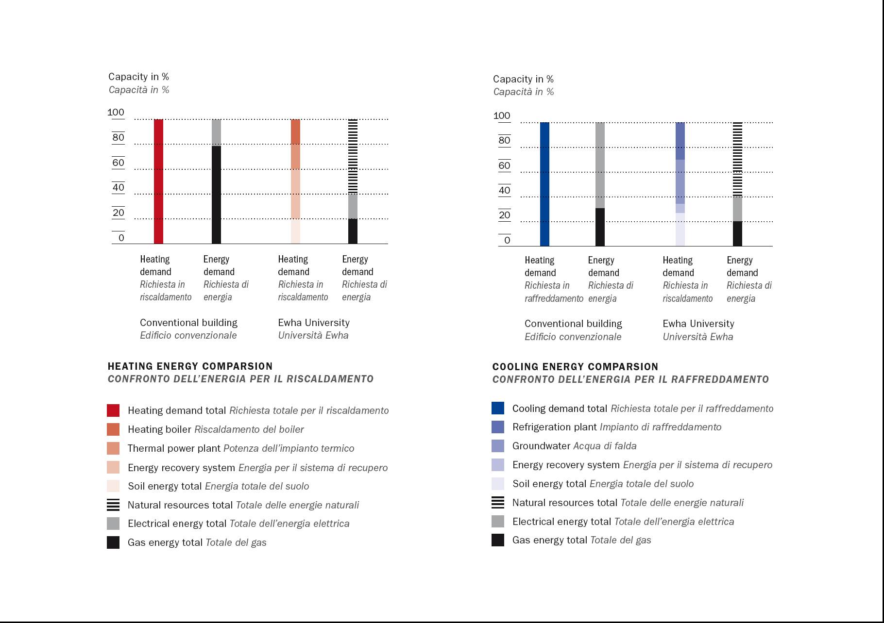 É como o Champs Elysées de Paris, ou o Campidiglio, de Roma: um pátio de entrada (a partir do qual se acessam os diversos departamentos), um espaço para a troca de ideias e a socialização, onde os estudantes se encontram depois das aulas; um lugar de descanso e um teatro ao ar livre, uma vez que a escadaria se converte facilmente em um anfiteatro, no qual os degraus passam a ser utilizados como bancos. É essa flexibilidade, tanto conceitual quanto real, que permite a integração do novo Campus de Ewha ao seu contexto, seu entorno e à paisagem circundante.