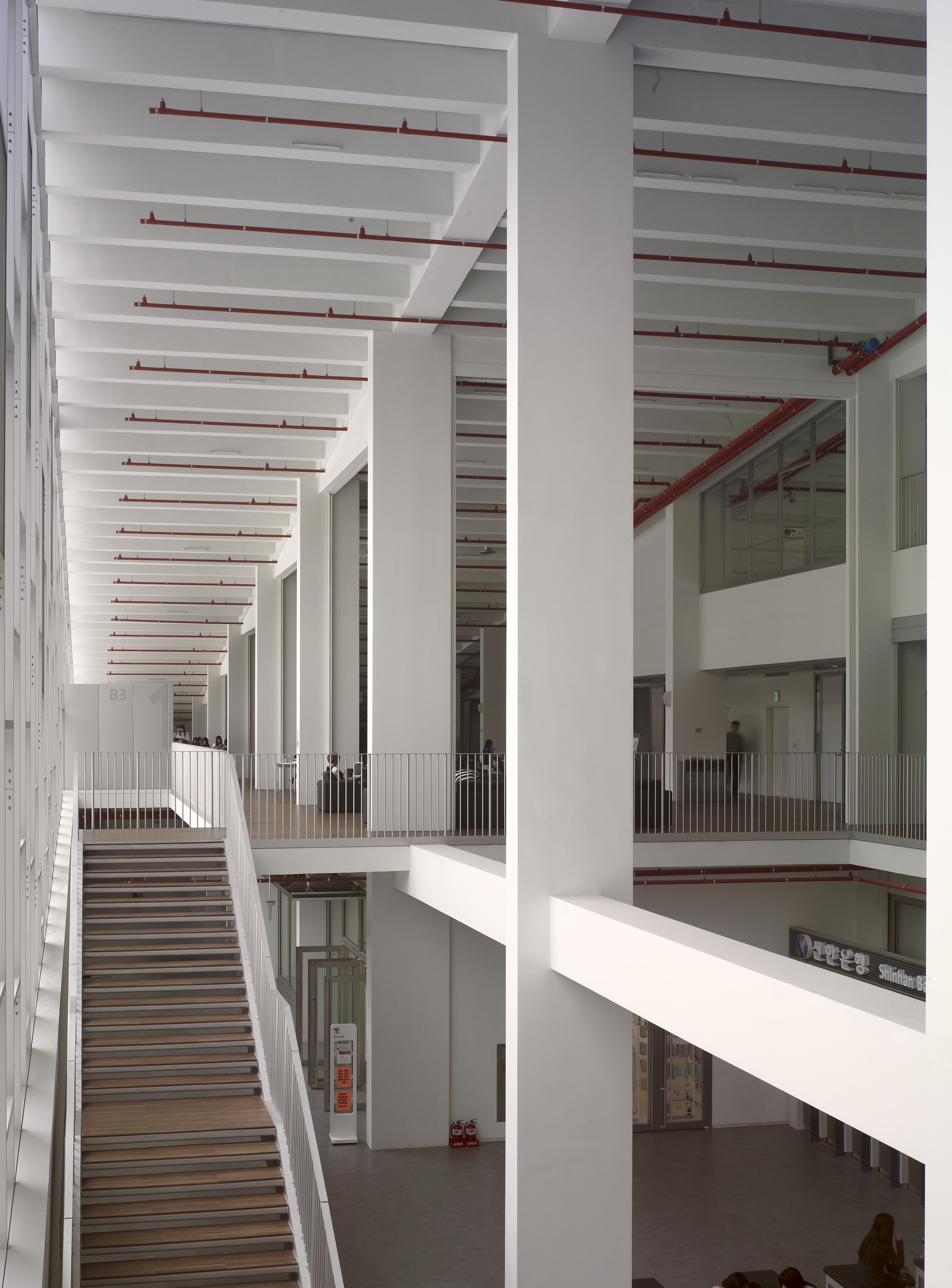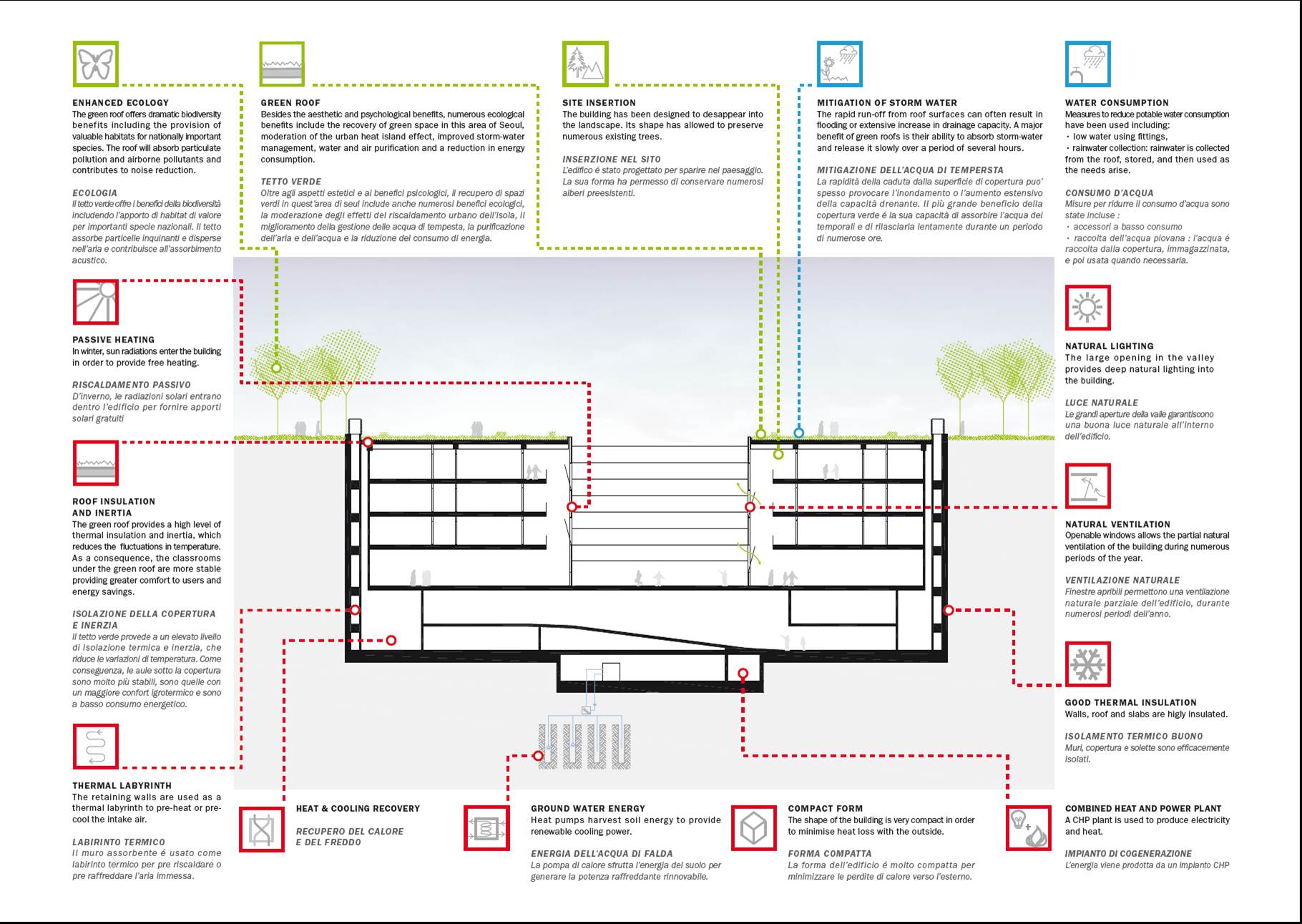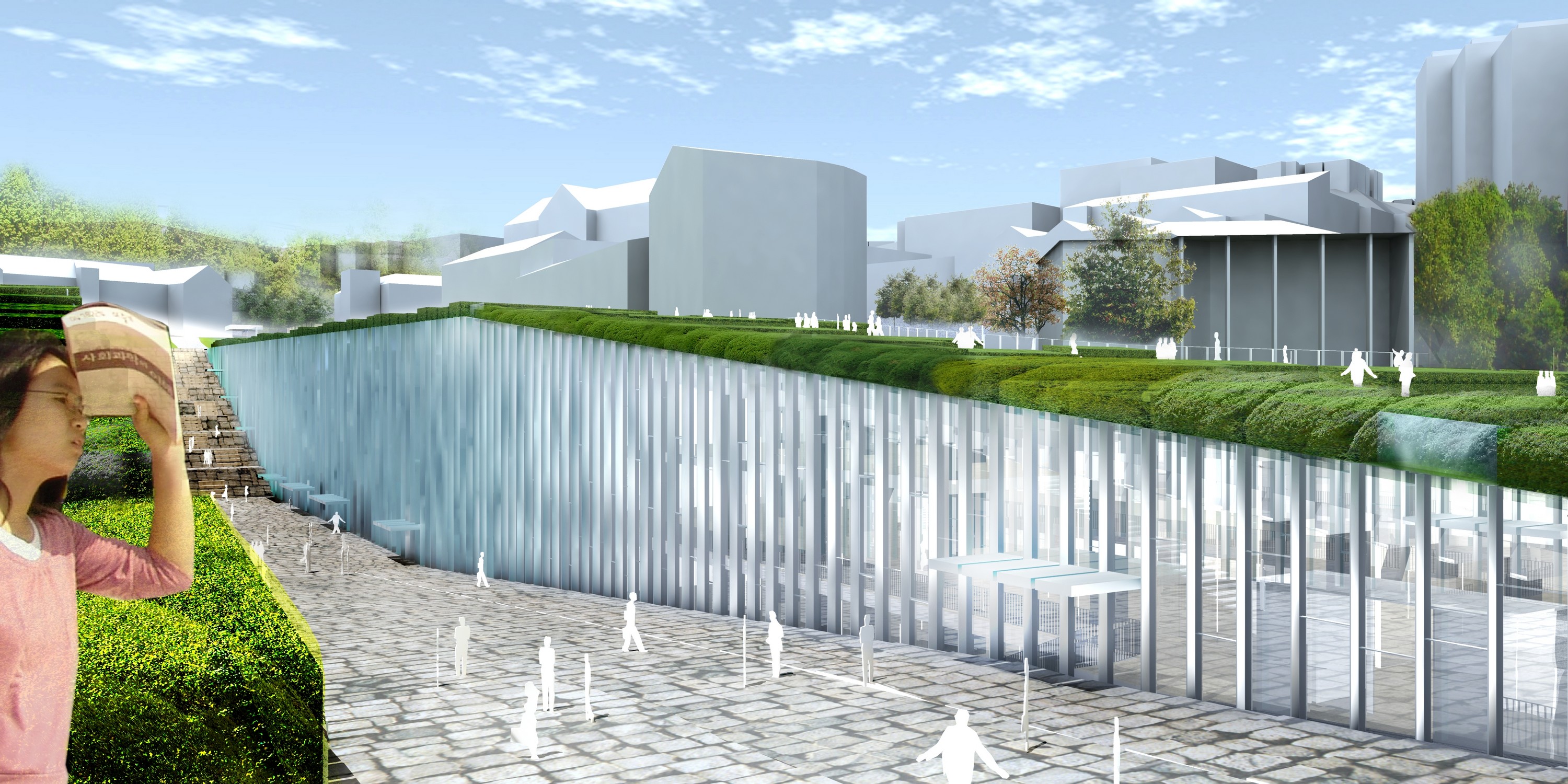A complexidade do lugar e sua relação com o campus existente e com a cidade de Shinchon, na parte sul, exigiram uma resposta que fosse além do lote propriamente dito. A partir de um enfoque urbano, este projeto propõe uma relação entre o tecido do campus existente e da cidade circundante, em uma paisagem única. A arquitetura se apropria do território e desaparece. Ao integrar a construção ao solo, a topografia do lugar se modifica e a geografia se transforma em diversos níveis.