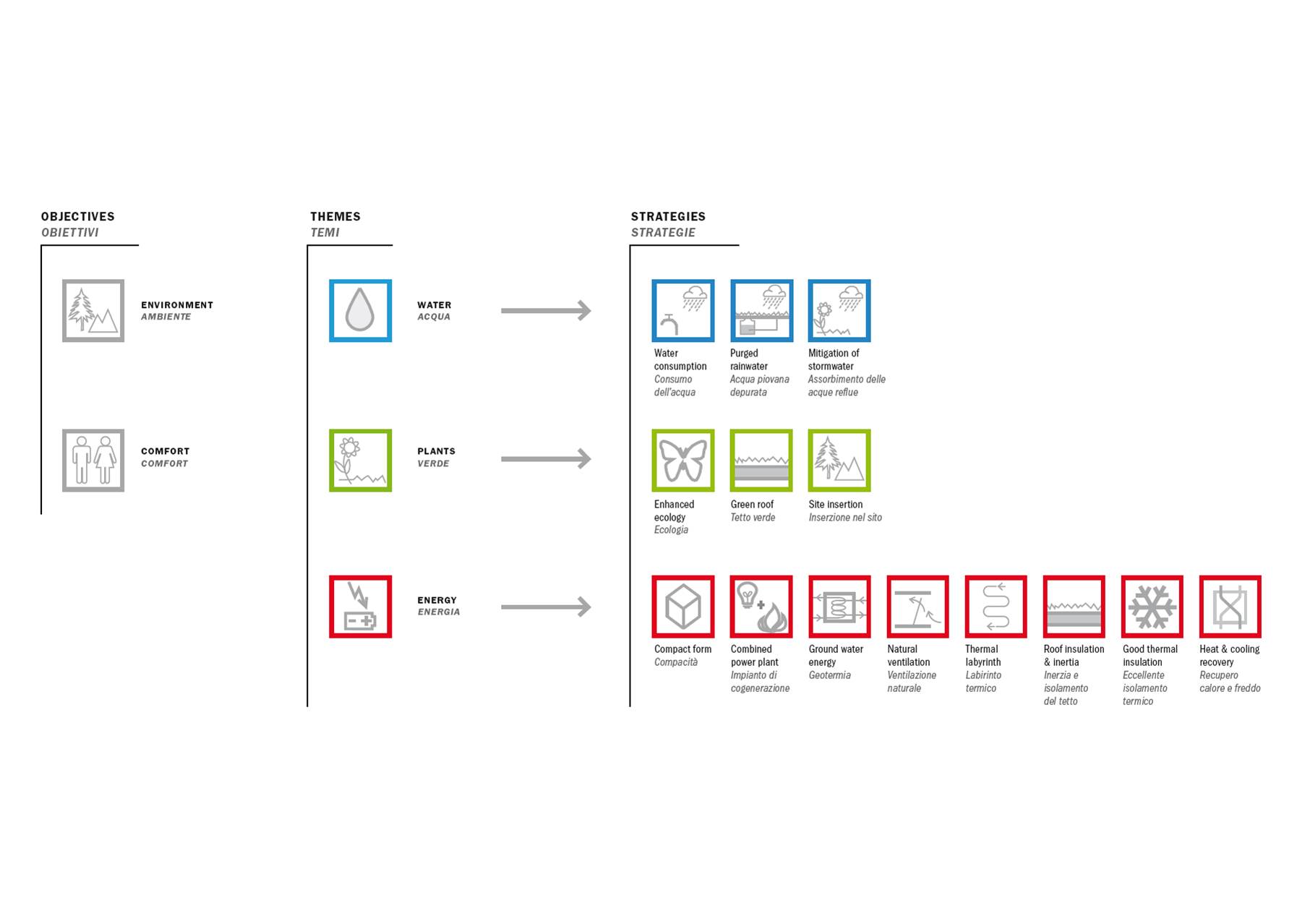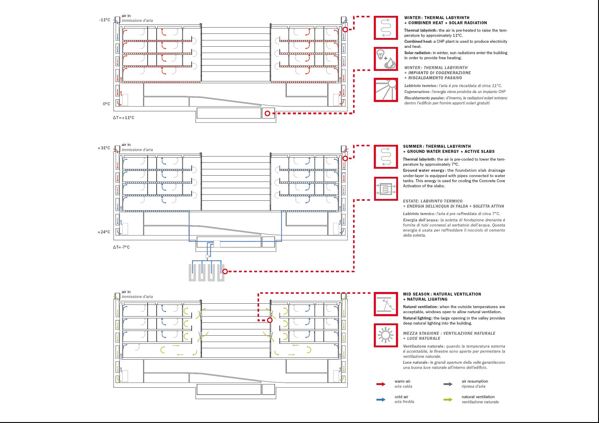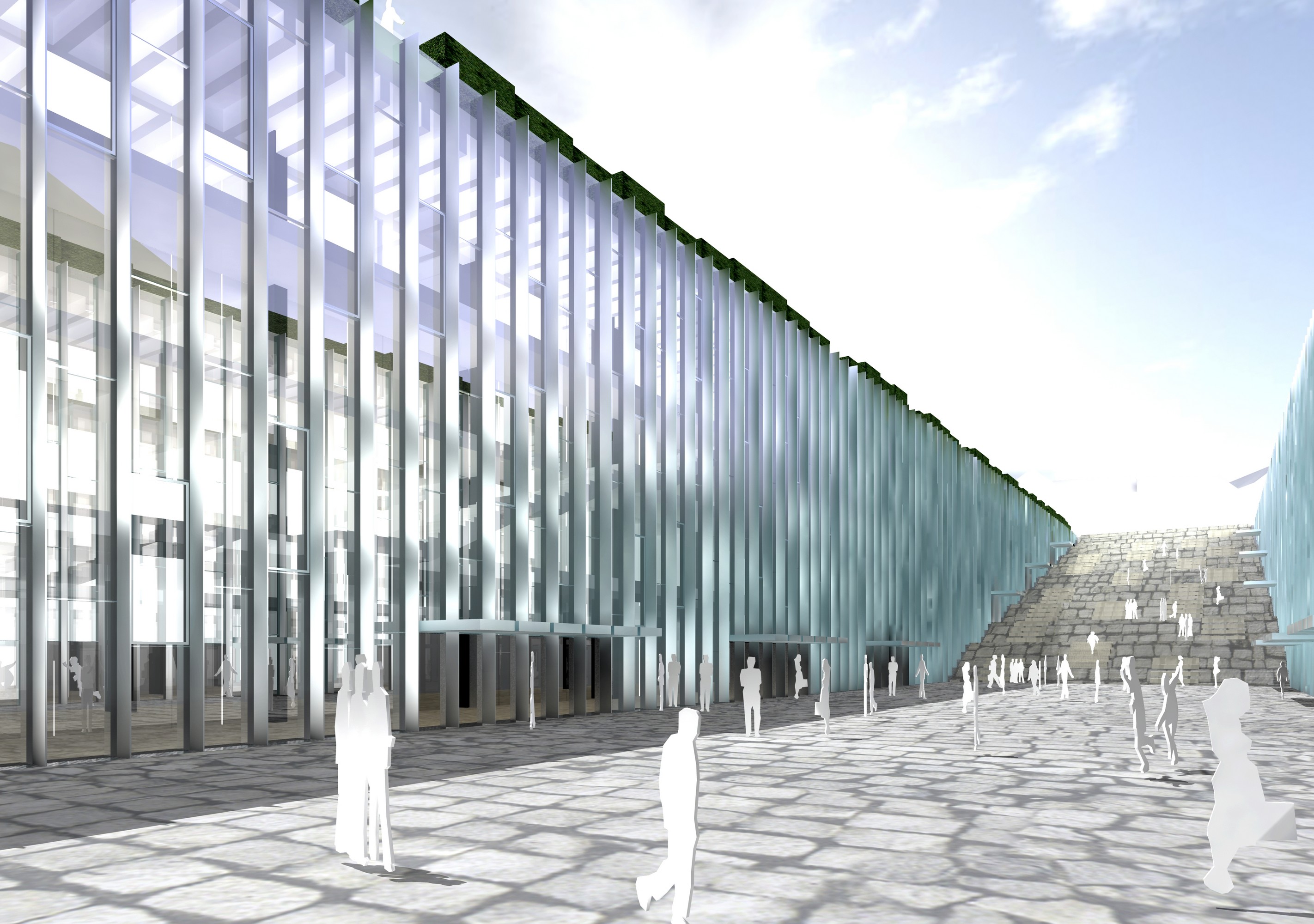 O projeto parte de uma “fissura” que se constrói na topografia, revelando o interior do Campus. Nesse vazio se estabelece um lugar híbrido, que permite a realização de uma grande variedade de atividades. Uma “avenida central”, levemente inclinada, define a circulação central, conduzindo os pedestres até a escadaria monumental, que leva os visitantes ao ponto alto do Campus.