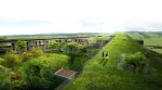 Optou-se por implantar o conjunto arquitetônico próximo à parte mais elevada do terreno, em um eixo longitudinal ao longo da cumeeira do terreno, acomodando-se à topografia natural e direcionando as visuais rumo às belas vistas panorâmicas do entorno. A leitura sensível desse território reflete na maneira com que o projeto interage com o relevo, estabelecendo uma relação dialética na qual a arquitetura atua como suporte físico para a contemplação ambiental.