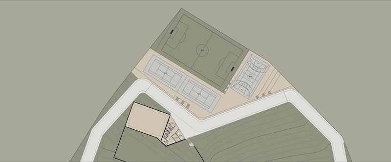 Terceira fase da construção, o Complexo Esportivo, faz uma composição com o hotel, contrabalanceando o volume da recepção, ficando a abaixo do nível dos quartos e ao lado oposto da recepção. O edifício e os decks são escalonados e em leque, seguindo o desnível do terreno. No edifício fechado, a piscina aquecida, a academia e o restaurante possuem uma vista para as reservas vegetais e para o campo e quadras.