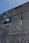 O invólucro exterior leve tem um caráter descontínuo, é perfurado ou desaparece em pontos singulares como a entrada. Essa malha gera uma diversidade espacial na área de acesso com relações muito fortes entre o espaço aberto da praça e o espaço do terraço-mirante, em contraste com a austeridade da caixa exterior.