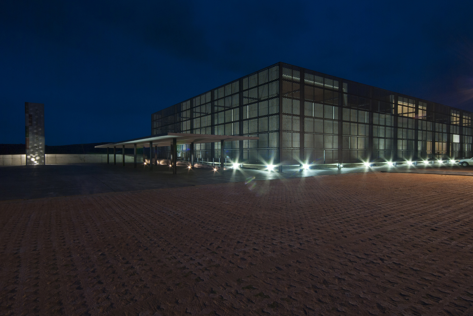 O Centro também busca uma relação metafórica com o lugar, o que efetivamente contribui para a produção de um elemento arquitetônico novo, recriando uma parte do prédio como algo que pertence à terra (estereotômica) e outra que é separada e se distingue dela (tectônica), que é uma espécie de máscara protetora, tão leve quanto possível, recobrindo o conjunto. Nesse sentido, o edifício foi projetado como uma caixa de concreto, fazendo referência à pedra como elemento natural, perfurada por clarabóias de grande porte e uma malha perfurada exterior, que envolve e cobre de luz todo o espaço, como uma segunda pele.