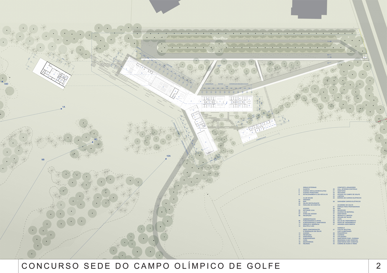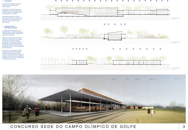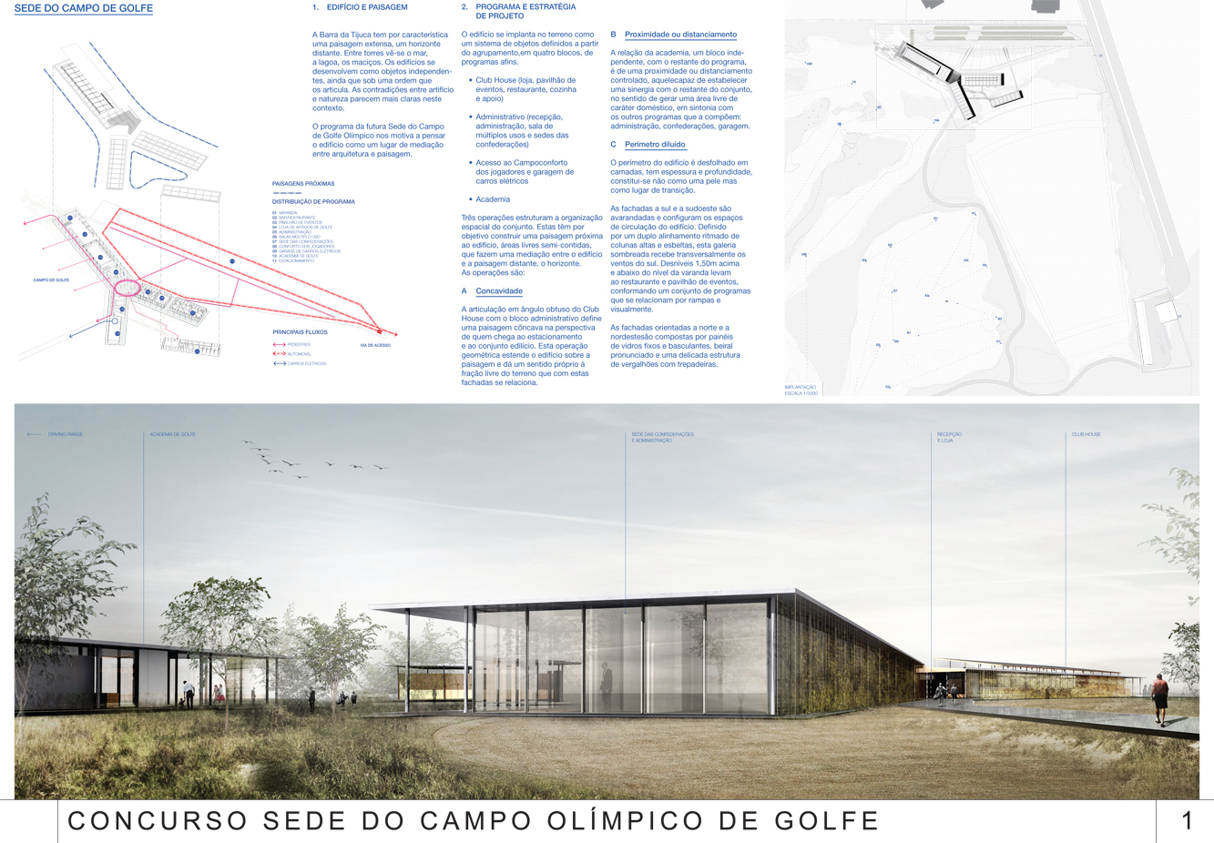 A Barra da Tijuca tem por característica uma paisagem extensa, um horizonte distante.Entre torres vê-se o mar, a lagoa, os maciços. Os edifícios se desenvolvem como objetos independentes, ainda que sob uma ordem que os articula. As contradições entre artíficio e natureza parecem mais claras neste contexto. O programa da futura Sede do Campo de Golfe Olímpico nos motiva a pensar o edifício como um lugar de mediação entre arquitetura e paisagem.