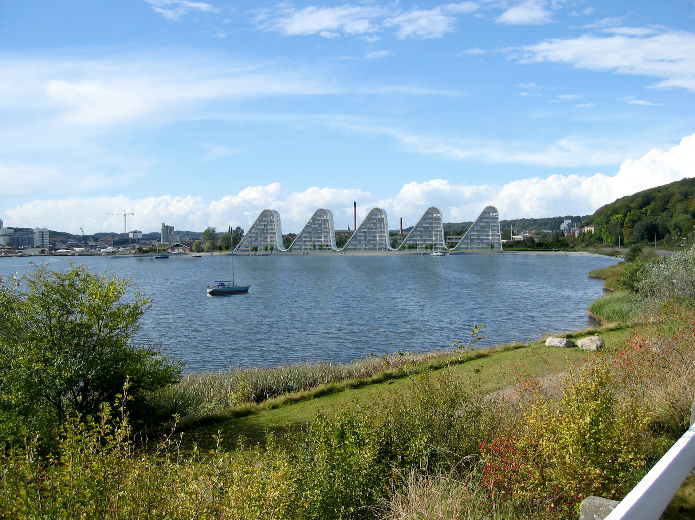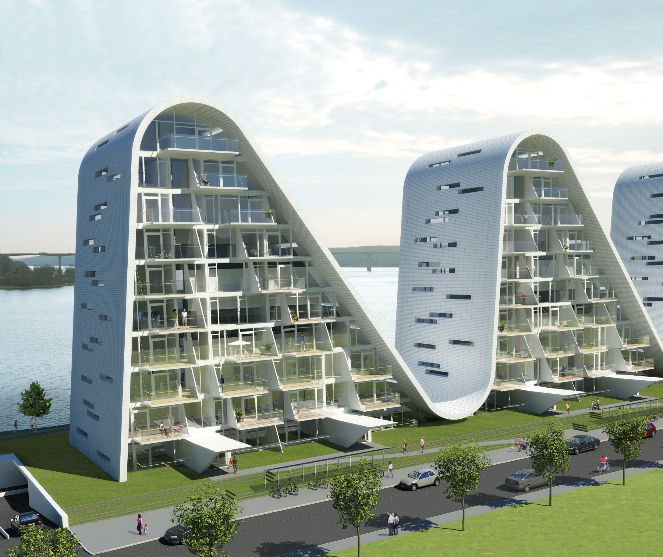 Com suas cristas de ondas, o Wave in Vejle (como foi batizado o projeto) destaca-se ao mesmo tempo como um ícone escultural e como um objeto em referência ao lugar.