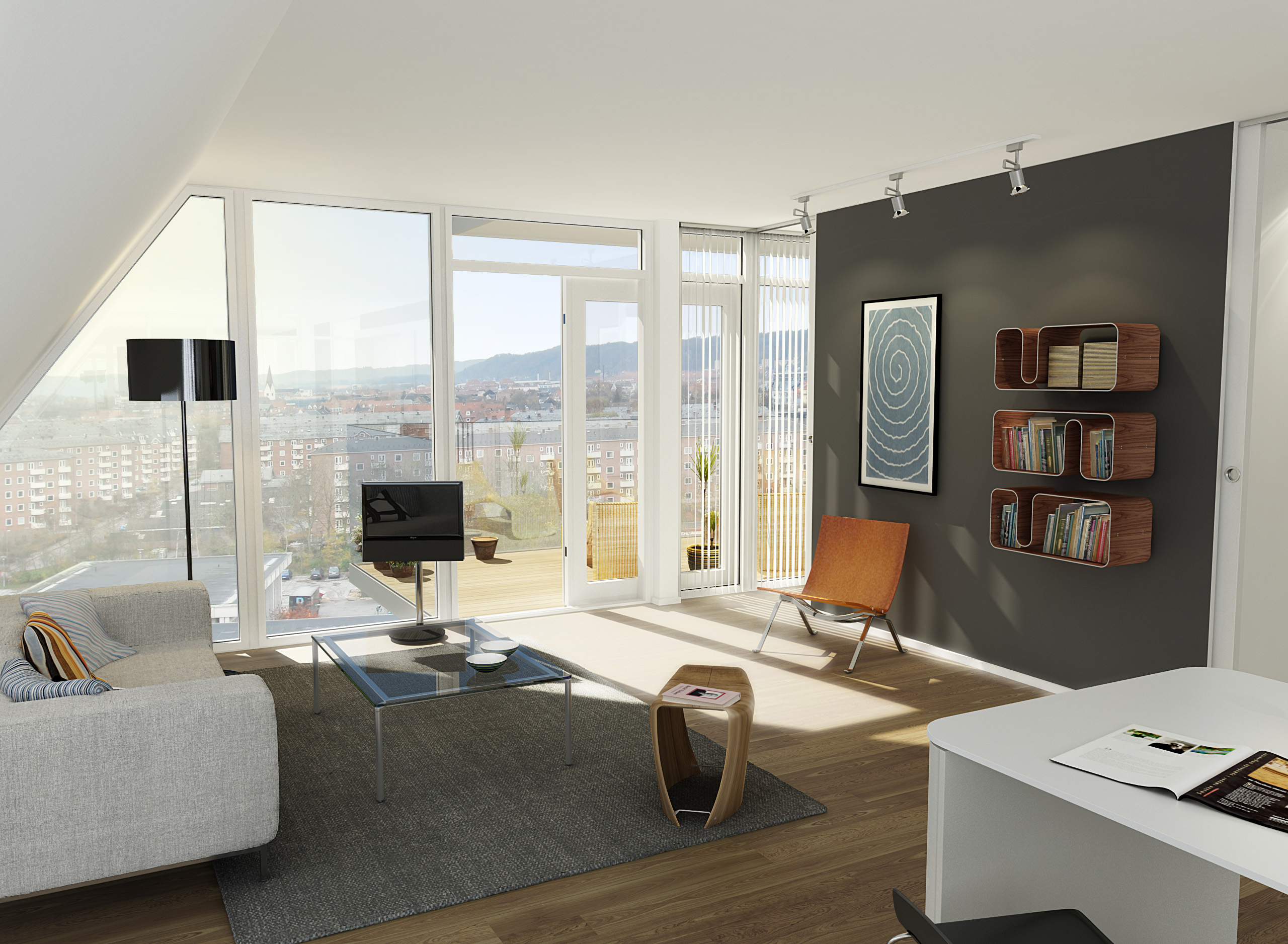 O edifício é composto por 100 apartamentos, a maioria em dois níveis. A organização funcional dos apartamentos garante uma vista esplêndida de todas as varandas. Junto ao passeio público em frente ao prédio, o Wave cria uma bela conexão entre o fiorde, a paisagem e a cidade, consolidando os diferentes elementos em uma assinatura clara e reconhecível.