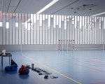 No que se refere ao Ginásio, definido o volume, o desafio do projeto arquitetônico reside na renovação do vocabulário tradicional: muitas vezes, lidamos com uma caixa opaca, cega e surda para o contexto em que ela ocorre. Aqui, nós tivemos que fugir do imaginário relacionado às instalações desportivas para implementar um objeto que nos permite ver um caleidoscópio da fragmentação urbana, de difração do som e de reflexão da imagem dos edifícios circundantes, a fim de responder ao desafio projetual com uma visão inovadora e mais sensível ao contexto. Para alcançar tal objetivo, a fachada é composta de duas camadas, a primeira (o vidro) que reflete e deixa a luz, e o segundo (o cobre), colorindo e aumentando a reflexão, proporcionando uma proteção contra os impactos do vidro.