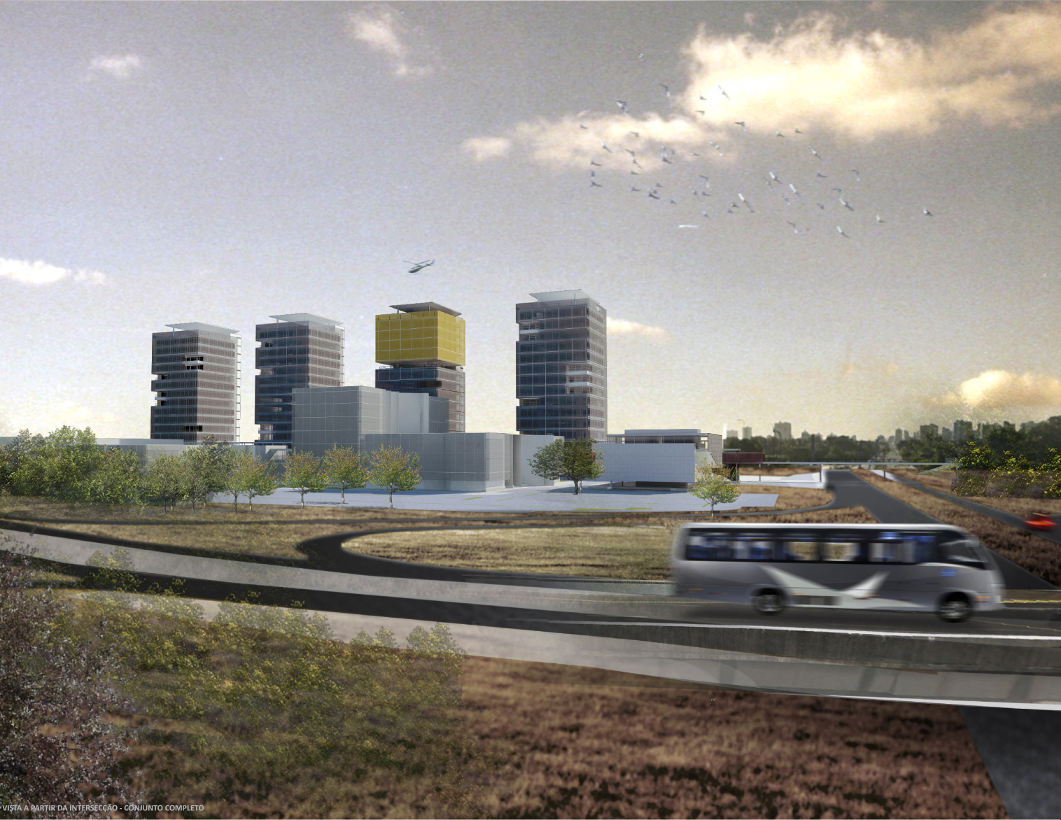 Em sua configuração completa, o conjunto alcança o limite do potencial construtivo (98.500m2) respeitando a taxa máxima de ocupação (30%) e o gabarito máximo de 15 pavimentos.