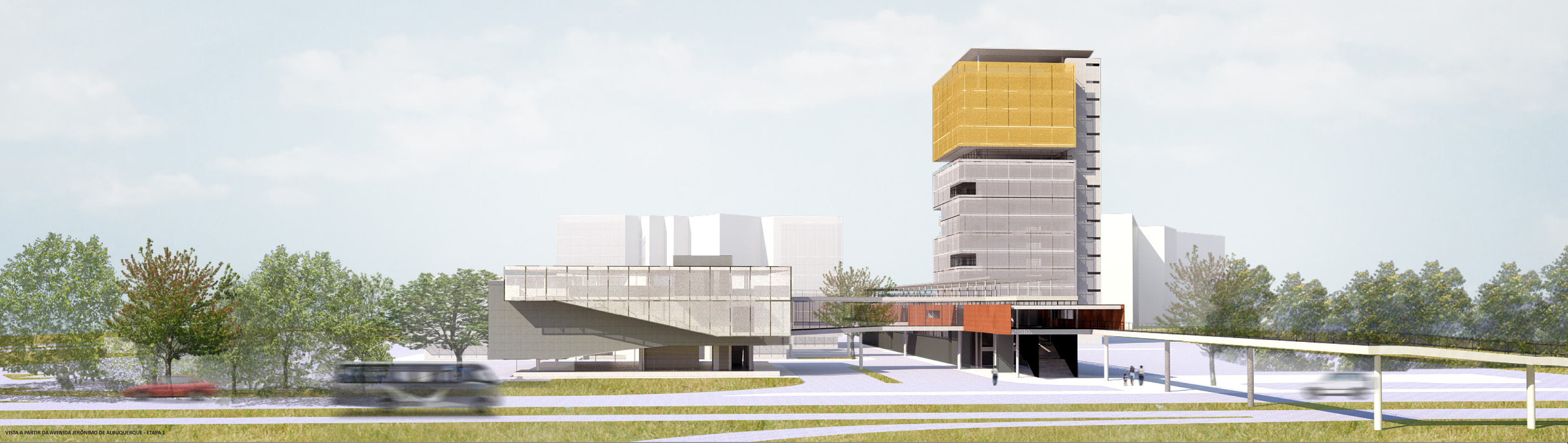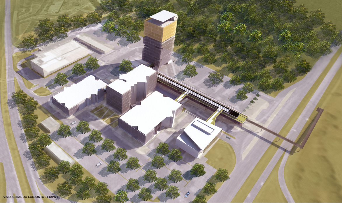 A primeira etapa inclui a implantação do Edifício-Tronco do Bloco de Eventos (auditório, restaurante e salas multimídia) e de uma torre de escritórios (Torre 02) que abriga a Governadoria e um conjunto de secretarias. Estas três edificações totalizam aproximadamente os 13.500 m2 de novas áreas solicitadas no Termo de Referência. Ao conectar-se aos três edifícios existentes (E1 / E2 / E3) através de passarelas, conformam um conjunto funcionalmente integrado na escala do usuário.