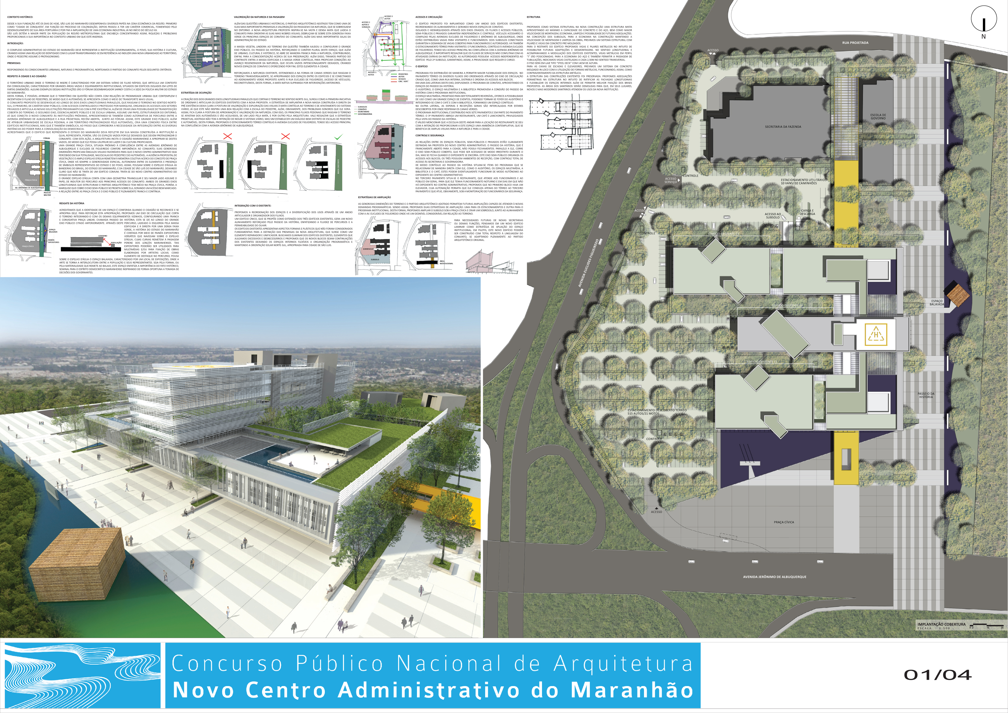 O complexo administrativo do estado do maranhão deve representar a instituição governamental, o povo, sua história e cultura, criando assim uma relação de identidade com o lugar transformando-se em referência ao induzir uma nova urbanidade ao território, onde o pedestre assume o protagonismo.
