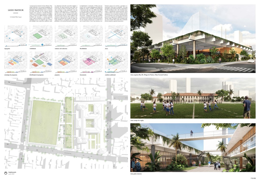 Entre dezembro de 2019 e maio de 2020 foi realizado o concurso por convite para a ampliação do Liceu Franco-Brasileiro Pasteur, em São Paulo. O Liceu é uma instituição pública de direito privado, conveniada desde 2017 à Agence pour l’enseignement français à l’étranger (AEFE). Faz parte da rede de instituições francesas no exterior, presente em 135 países. A escola funciona, desde 1923, em edificação histórica em São Paulo, de autoria do Escritório Técnico Ramos de Azevedo. A seguir é apresentado o projeto vencedor do concurso, de autoria do escritório NPC Arquitetura e os projetos dos demais participantes.